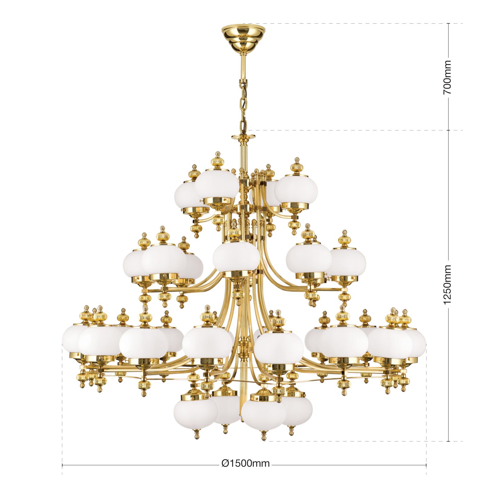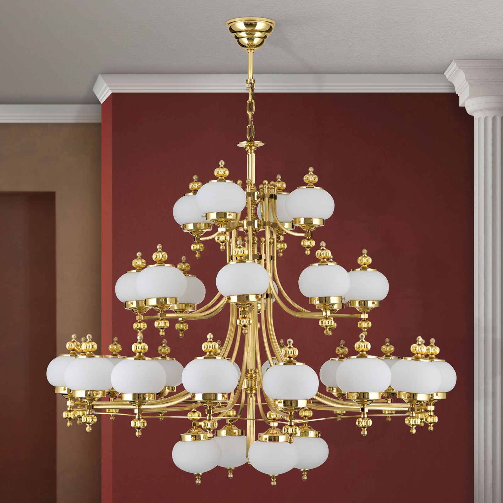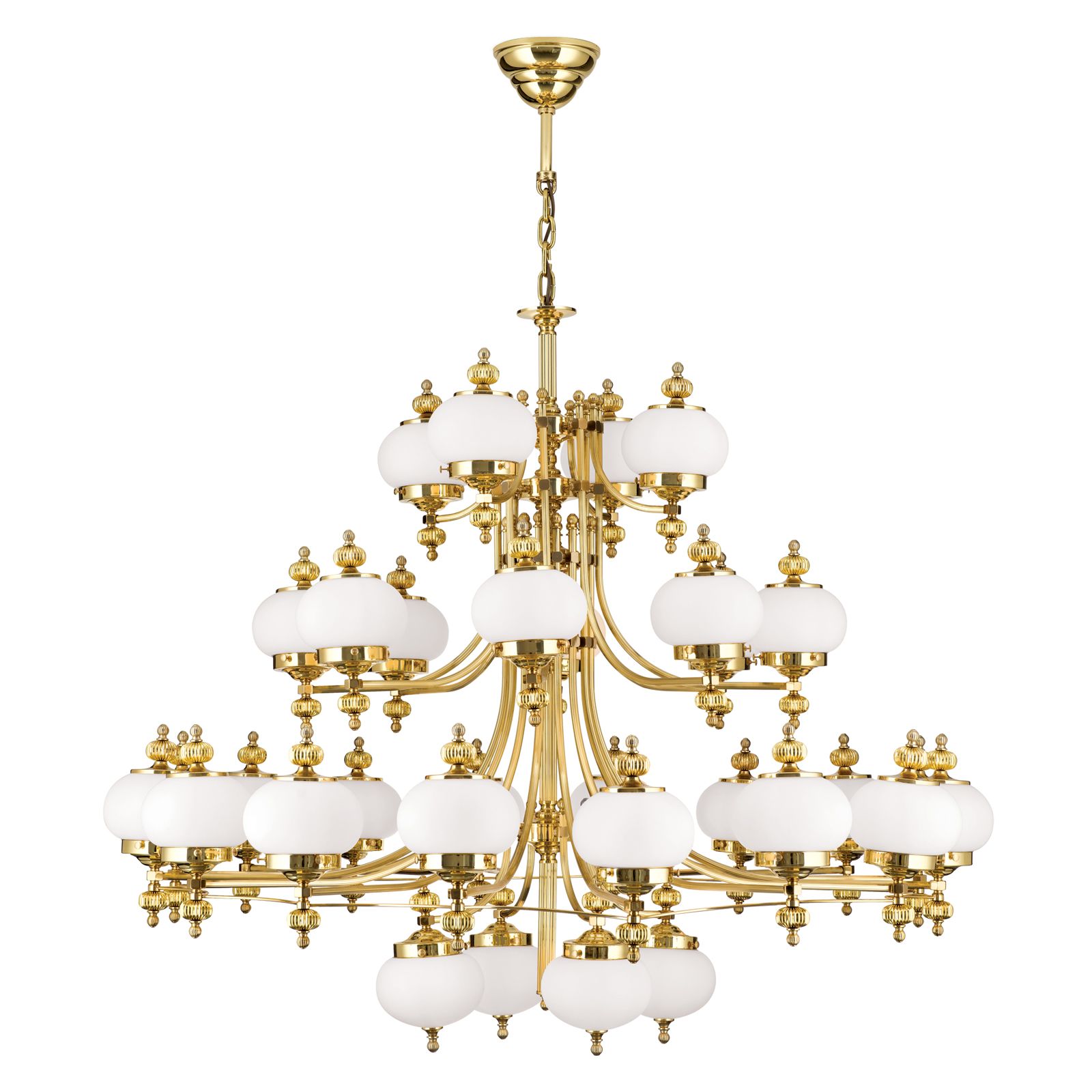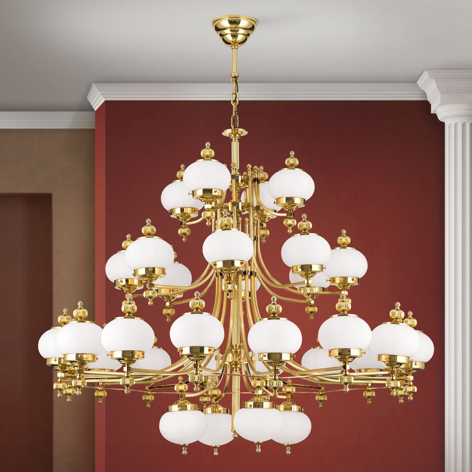 Luster WIENER NOSTALGIE, 32-flammig, Messing-glänzend, mit opal matten Gläsern, aufwärts