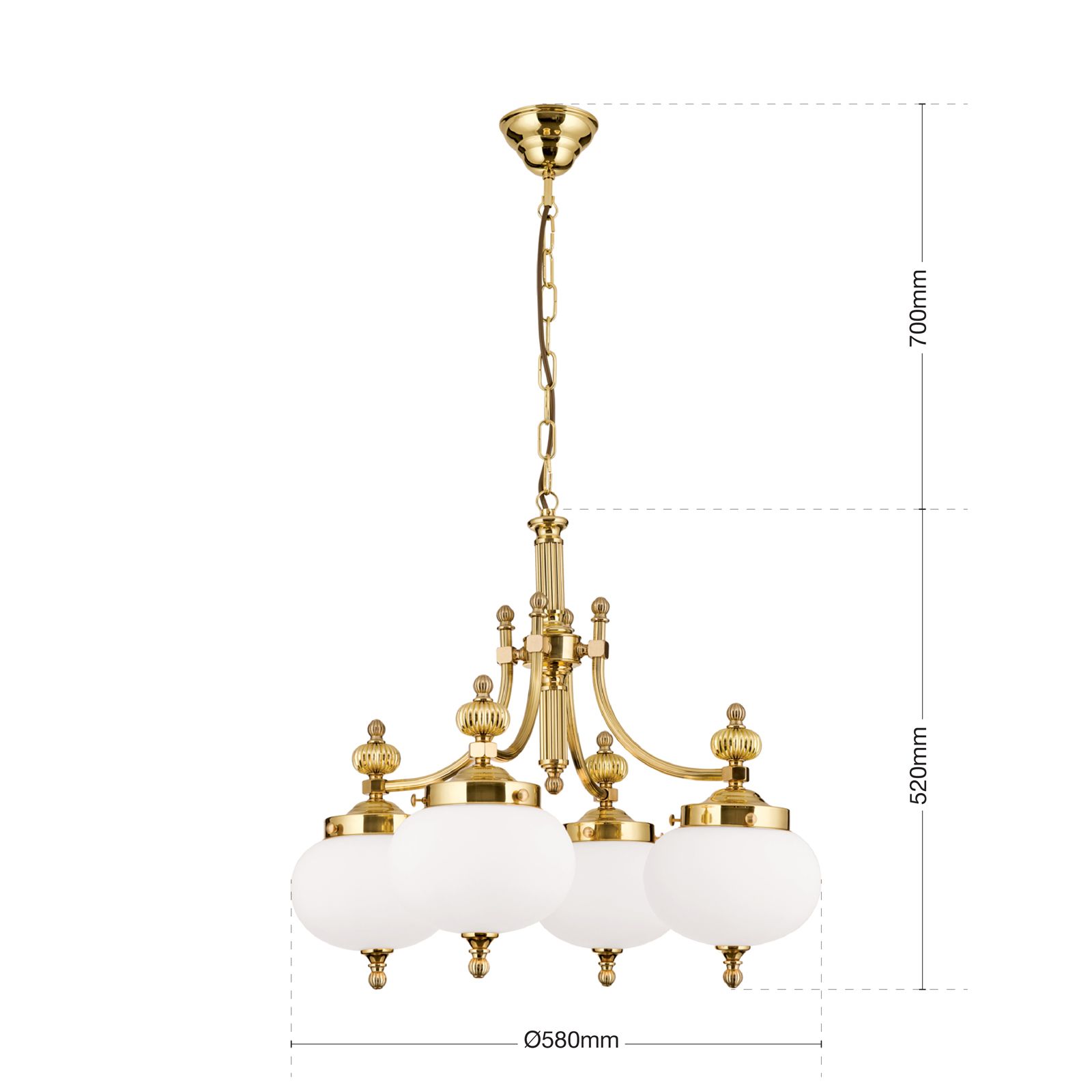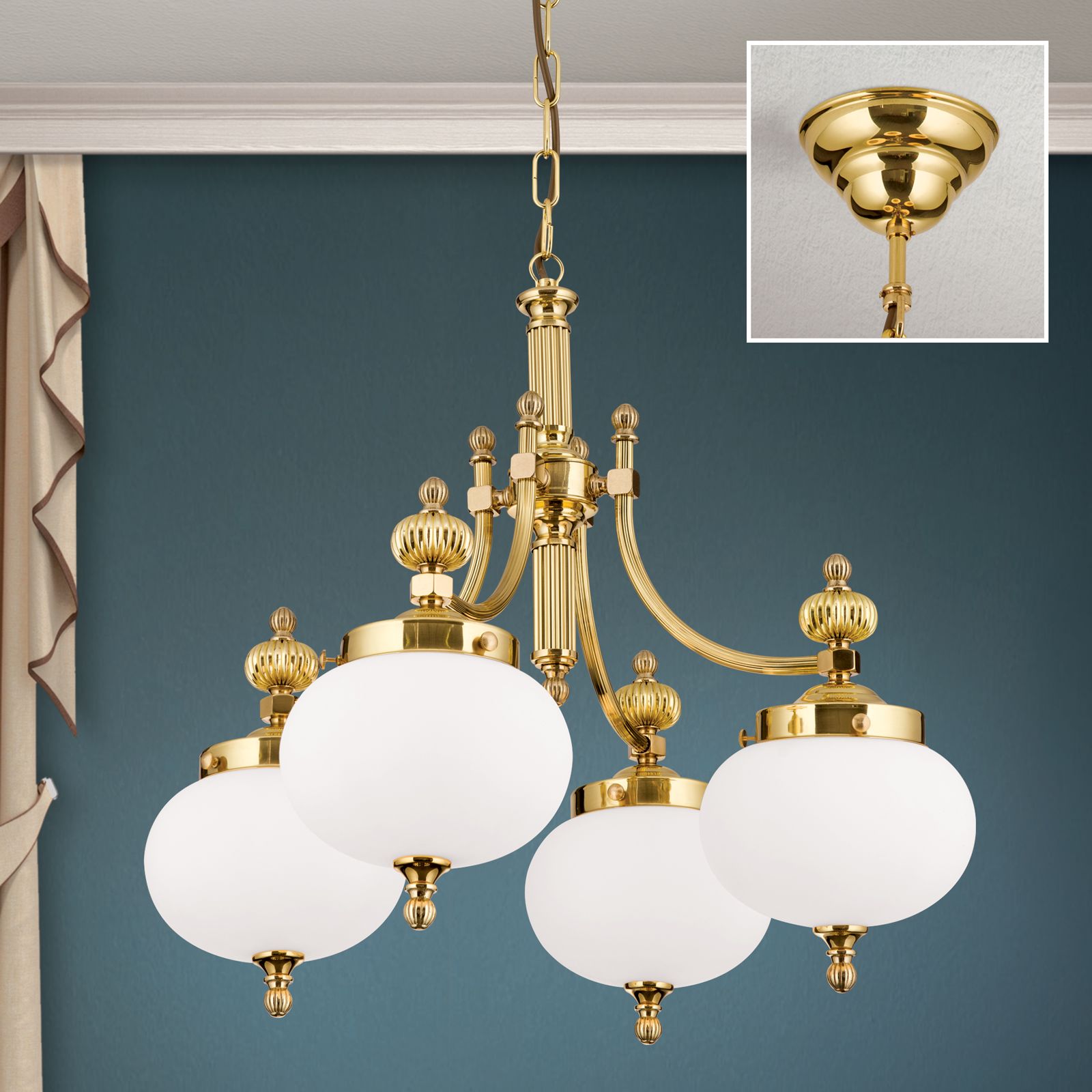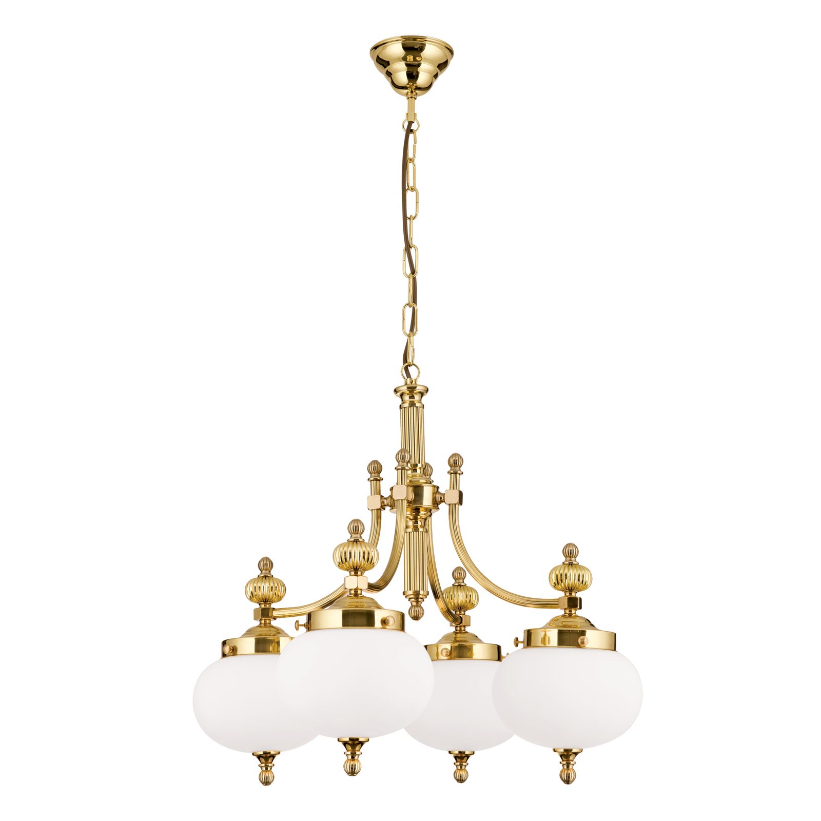 Luster WIENER NOSTALGIE, 4-flammig, Messing-glänzend, mit opal matten Gläsern, abwärts