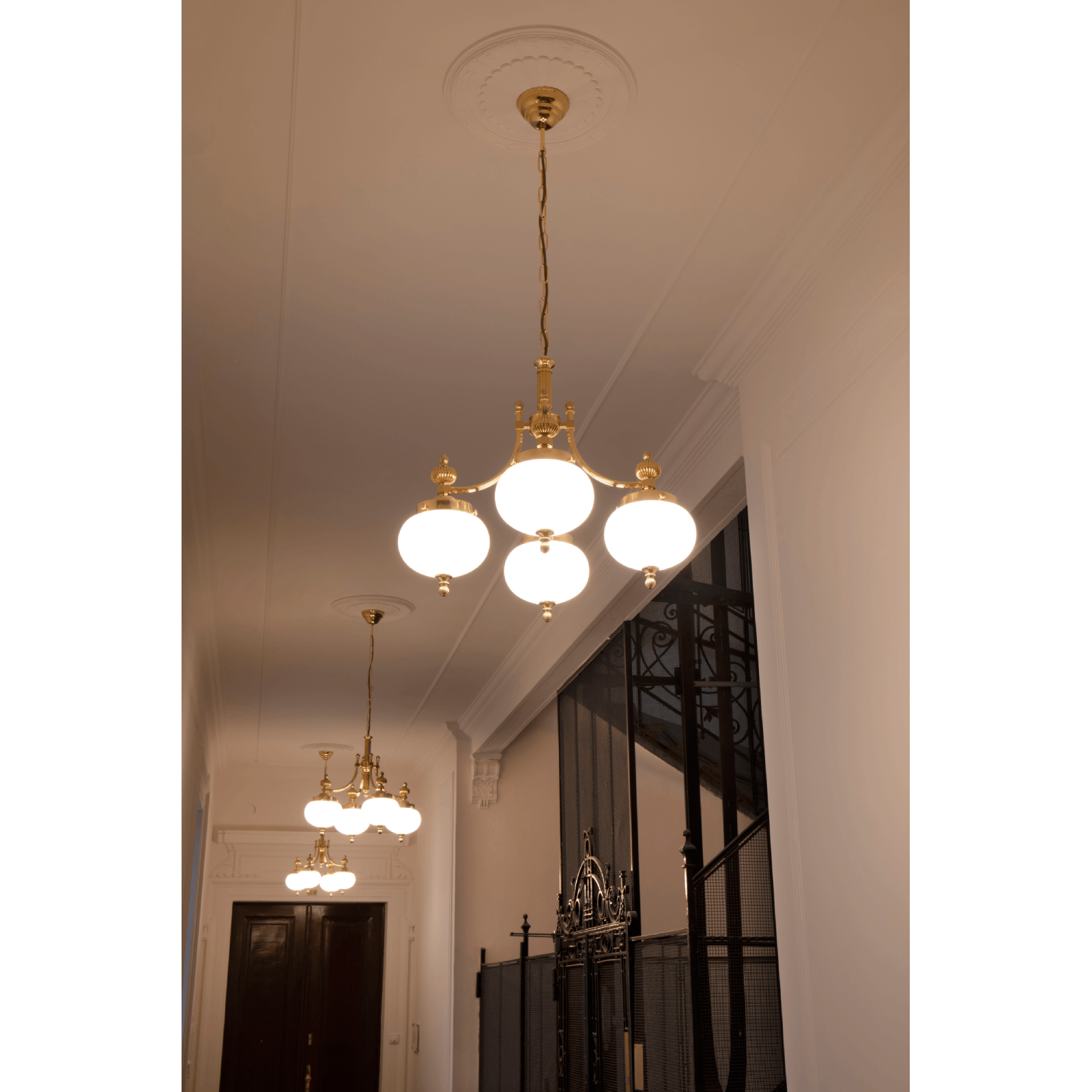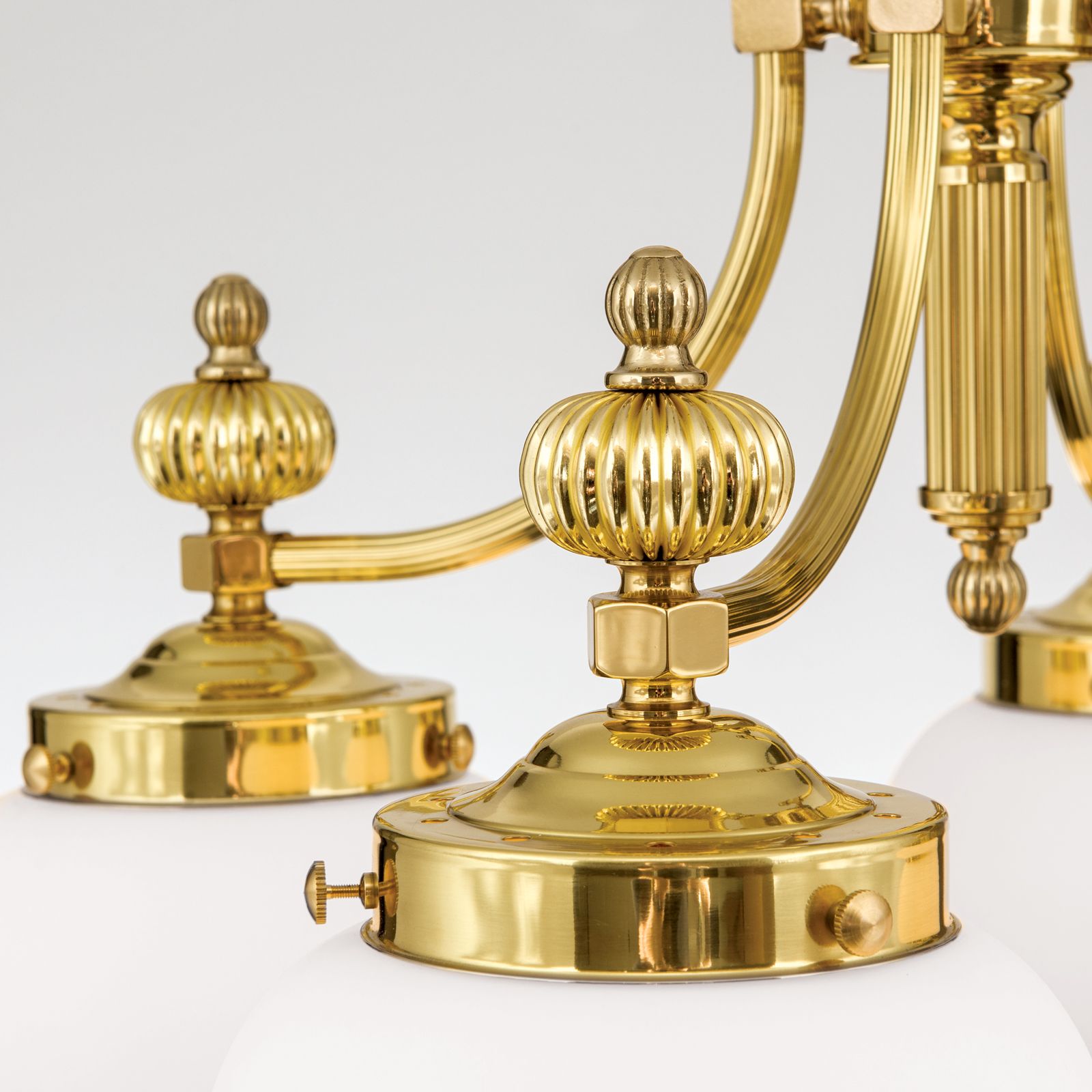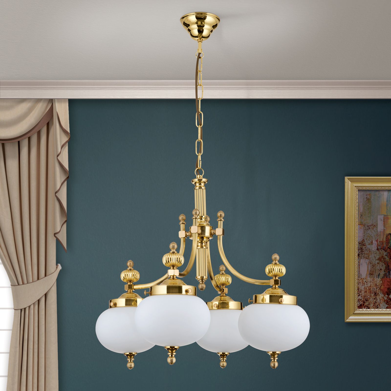 Luster WIENER NOSTALGIE, 4-flammig, Messing-glänzend, mit opal matten Gläsern, abwärts