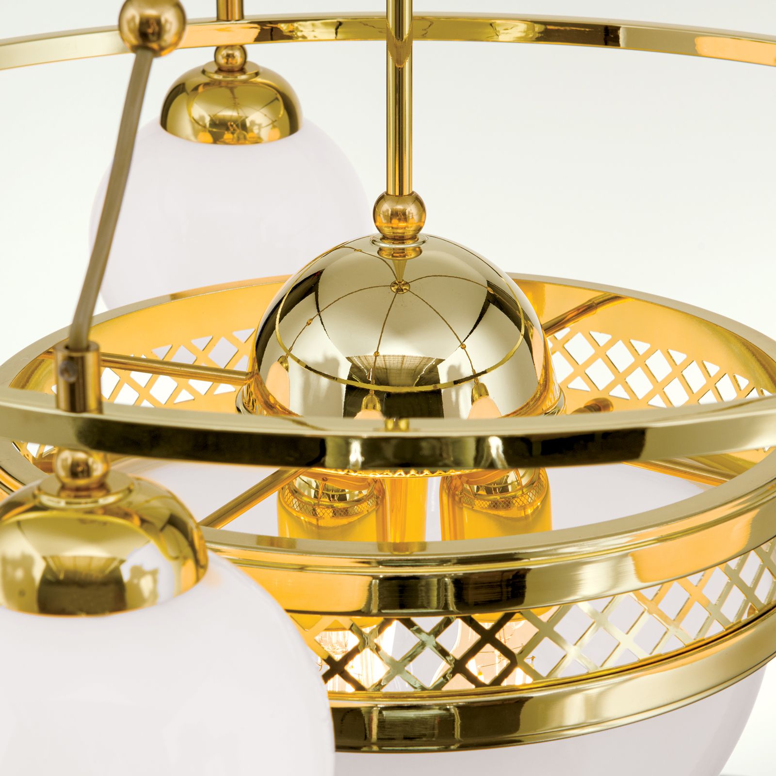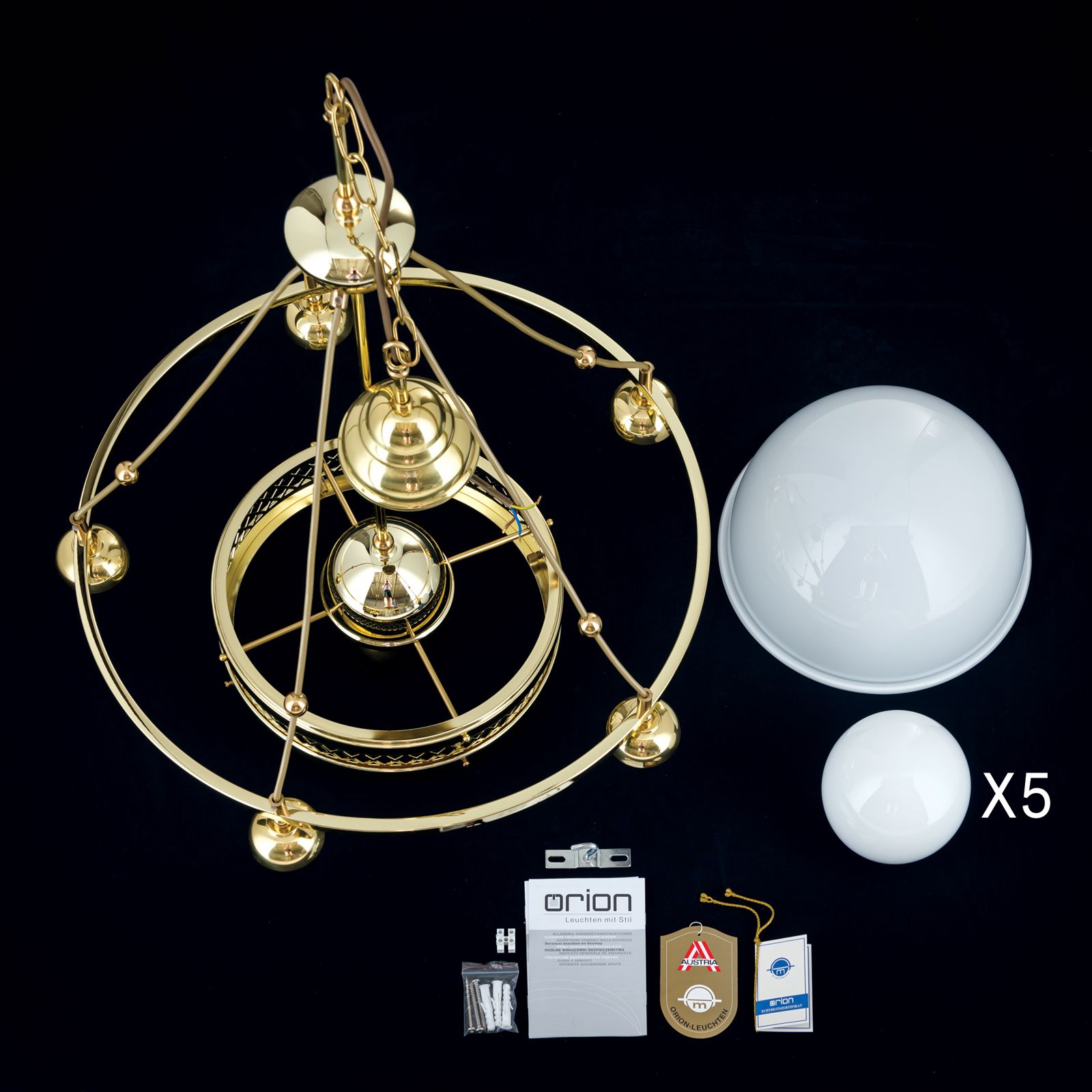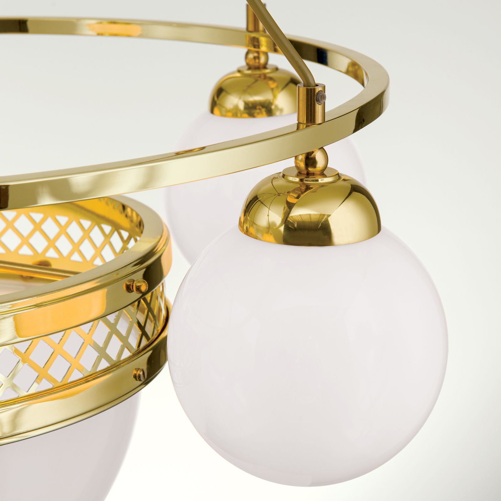 Pendelleuchte ALT WIEN, 5+1-flammig, Messing glänzend, mit opal glänzenden Gläsern