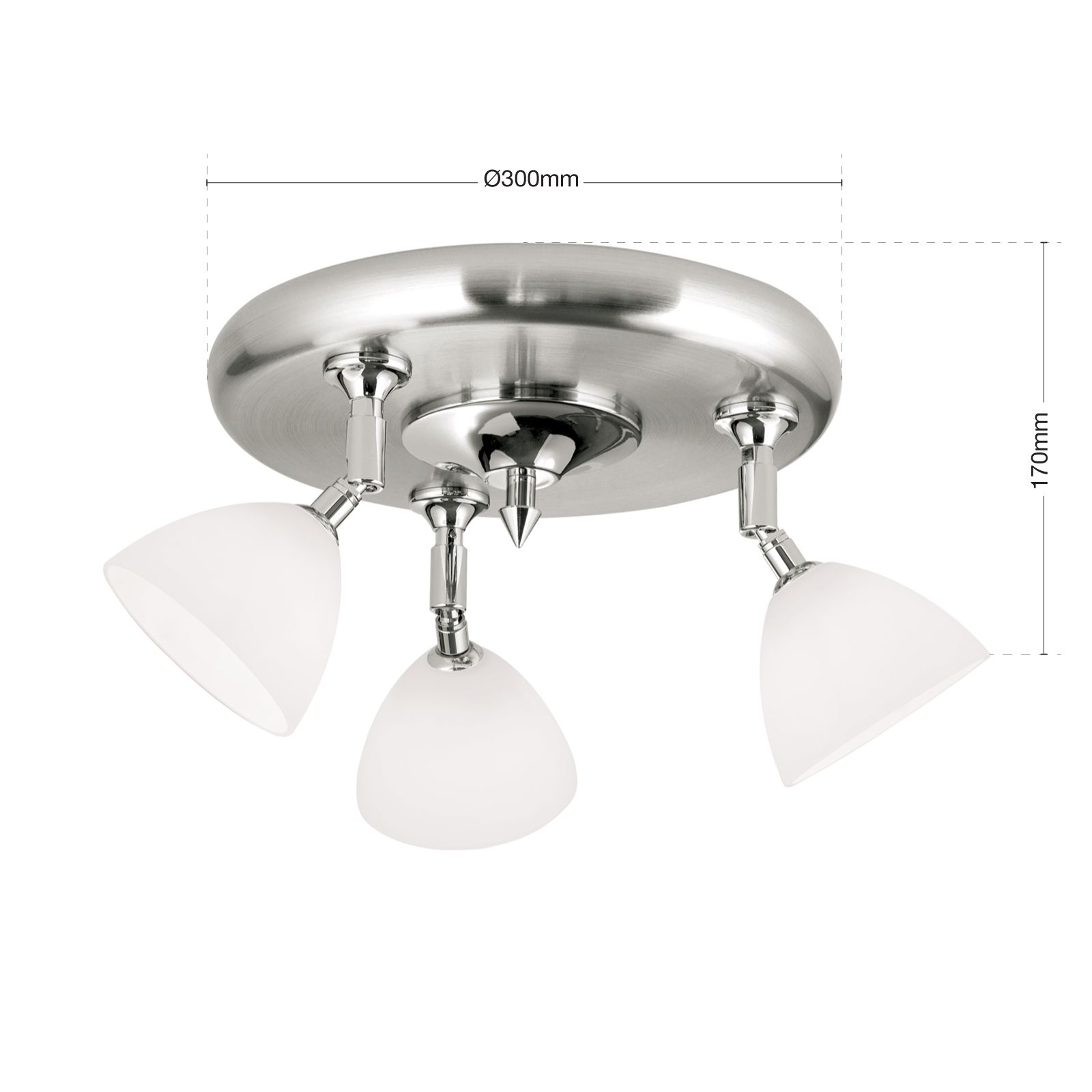 Runder Strahler OPALDESIGN, 3-flammig, Satin, mit Opalgläsern