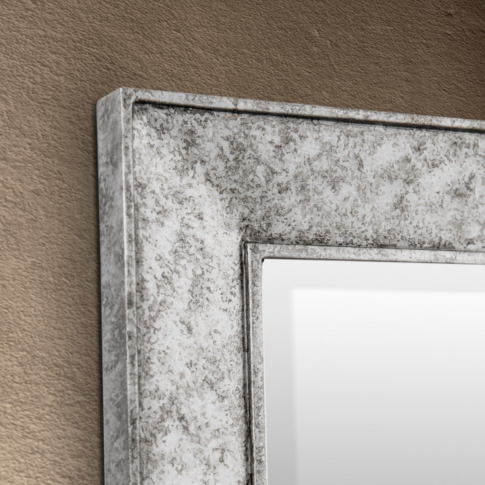 Er hat ein quadratisches Format und verfügt über zwei Halterungen links und rechts hinten am Rahmen, die eine einfache und sichere Befestigung ermöglichen. Hergestellt aus hochwertigen Materialien, bietet der Spiegel eine langlebige und pflegeleichte Oberfläche. Die silberfarbene Sprenkel-Lackierung verleiht dem Spiegel einen einzigartigen und stilvollen Look.
