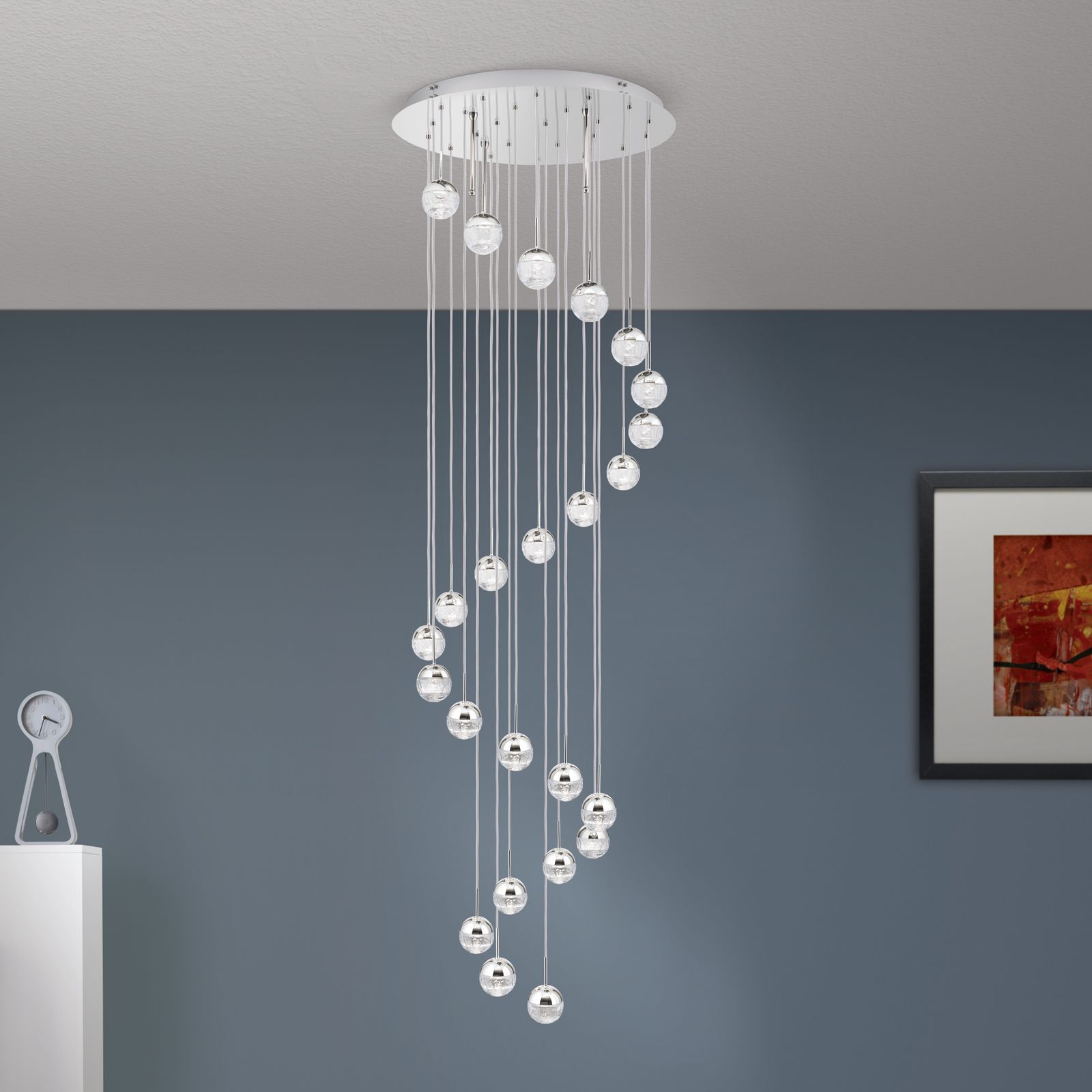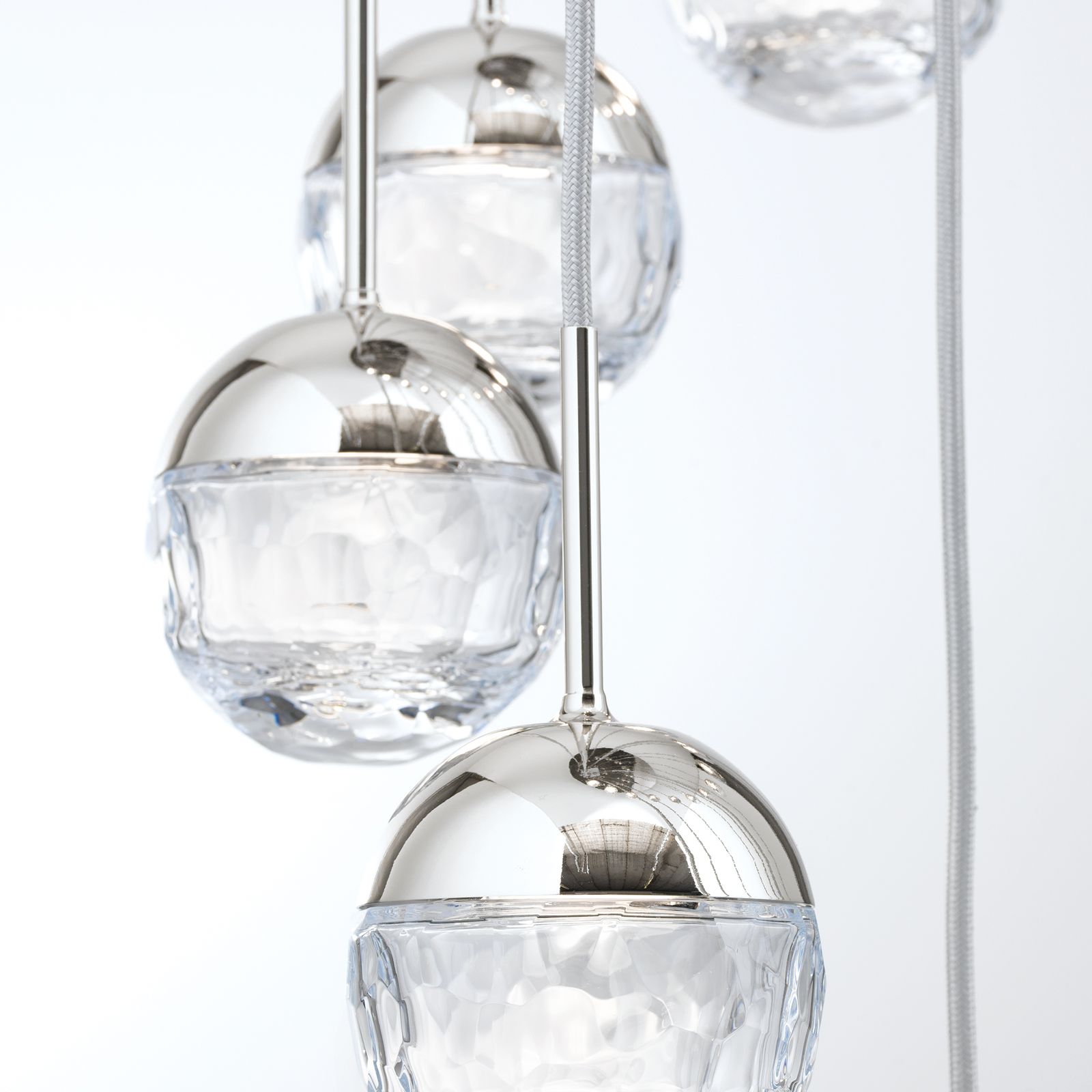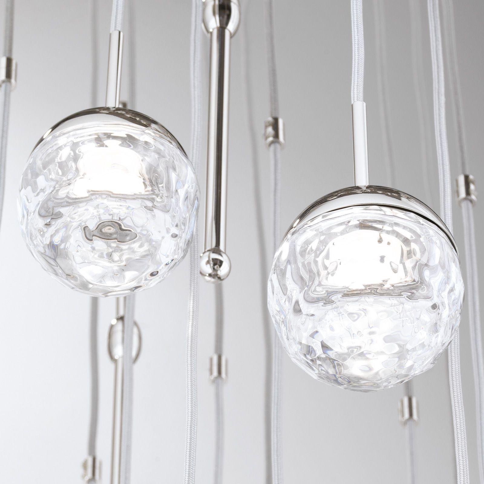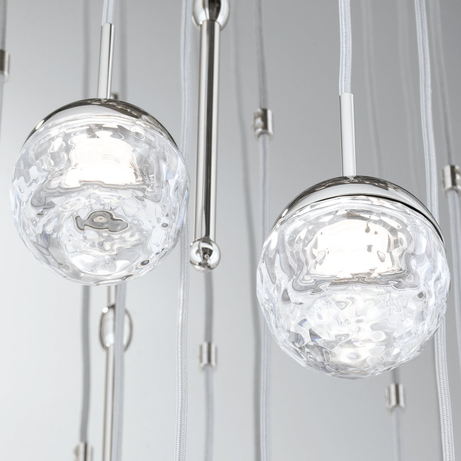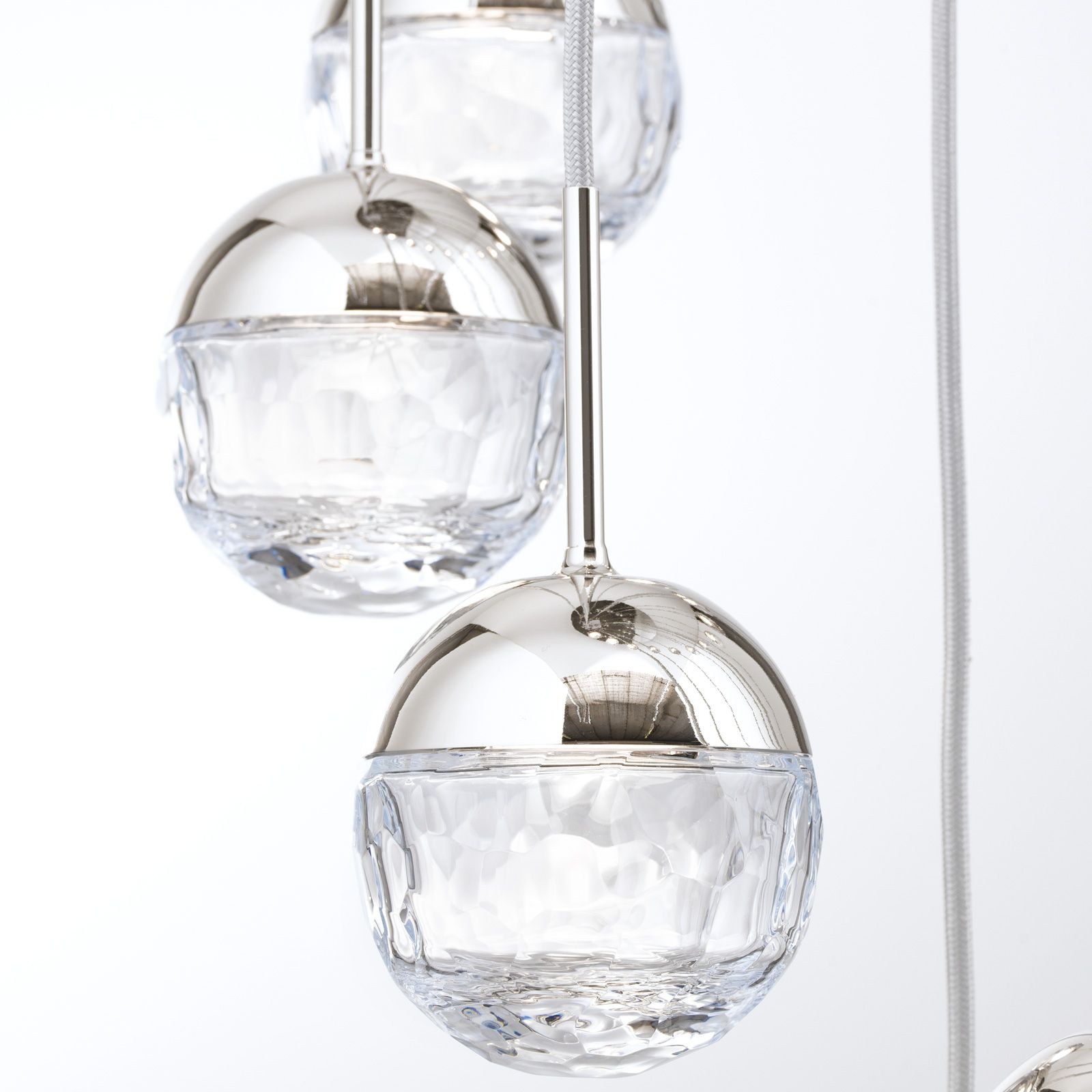 Spiralluster BALL, Ø 80cm, nickel, mit silbernem Textilkabel und klaren Gläsern in Kristallschliff