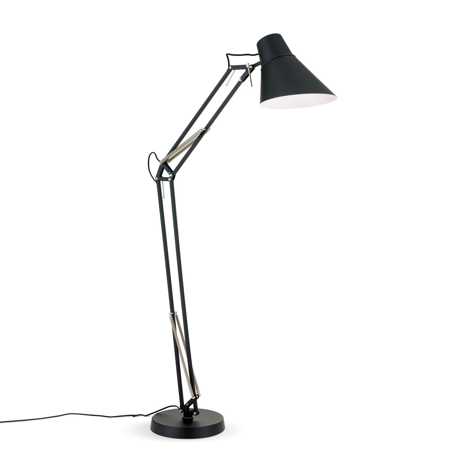 Wer den britischen Designklassiker der Zugfeder-Tischlampe ins Herz geschlossen hat, wird Gefallen finden an seiner Verwandlung in eine mannshohe Stehleuchte. Das Spiel mit den Dimensionen sorgt für einen Überraschungsmoment und macht die Leuchte zu einem wahren Eyecatcher. Die Stehlampe der Serie BACHELOR passt sehr gut zu Wohnräumen im Industrial Style und Vintage Stil, harmoniert aber auch bestens mit modern anmutenden Wohnstilen. Vom Schirm bis zum Sockel ist die Stehlampe schwarz pulverbeschichtet, nur die charakteristischen Zugfedern und Schrauben heben sich farblich davon ab. Wie ihre kleine Schwester ist auch die Stehleuchte mit ihren drei Gelenken äußerst flexibel. Der Leuchtkopf ist schwenkbar, sodass der Lichtkegel nach Bedarf ausgerichtet werden kann.