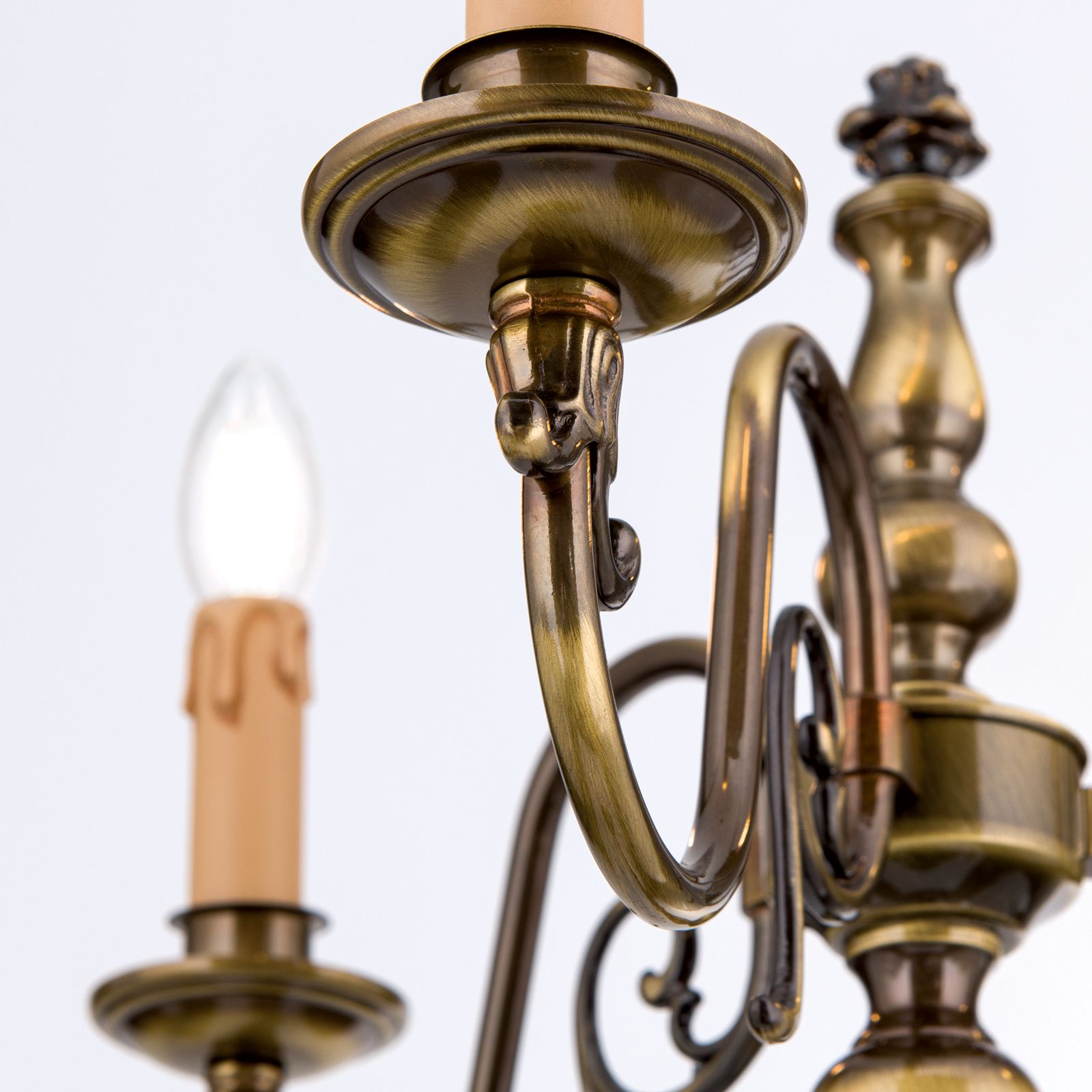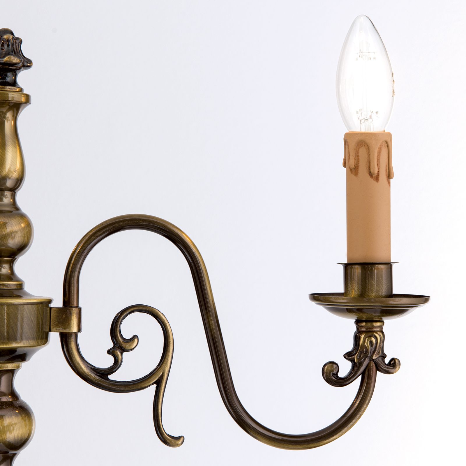 Der kunstvoll profilierte Schaft der Lampe verleiht Ihrem Raum eine klassische Eleganz und wird zum Blickfang in jedem Raum. Drei kunstvoll geschwungene Arme gruppieren sich harmonisch um den Schaft und halten die drei E14-Fassungen bereit, um Ihre Lieblingslampen zu beherbergen.
