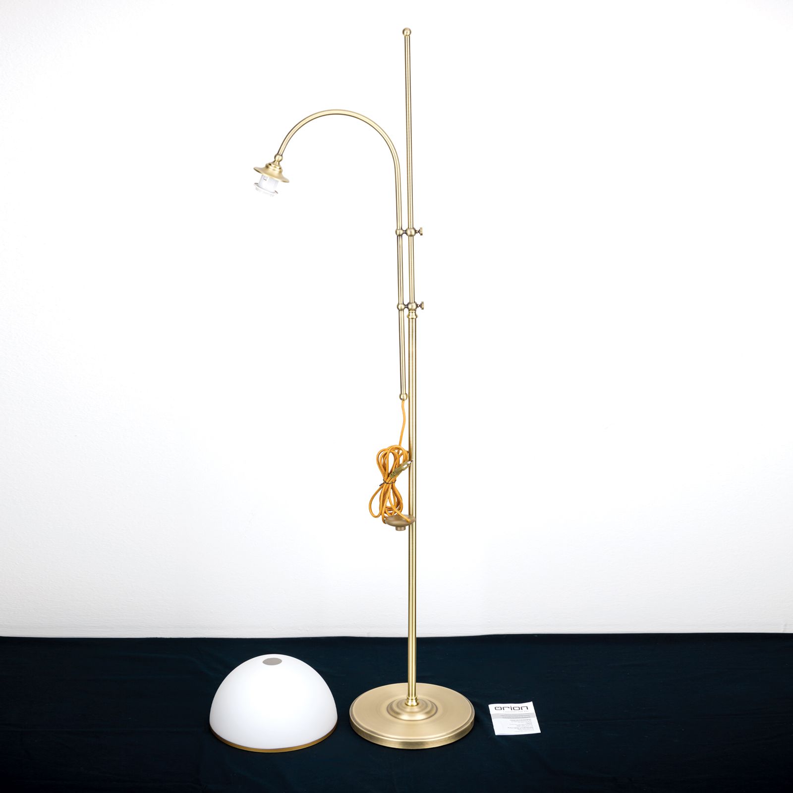 Eindrucksvoll im klassischen Wiener Kaffeehausstil präsentiert sich die Stehlampe OLD LAMP mit ihrer Kombination aus patiniertem Gestell und opal matten Glasschirmen. Sie verleiht jedem Wohnraum eine behagliche Wärme. Stellschrauben erlauben es, den Schirm auf die gewünschte Höhe zu bringen. So bietet Sie beim Lesen in einem großen Ohrensessel perfekte Unterstützung und leuchtet den Bereich gut aus. Ein reizendes Detail ist die Vergoldung des Schirms, der für ein harmonisches Gesamtbild sorgt. OLD LAMP gibt das Licht nach oben hin gedämpft ab, wobei der Hauptlichtstrahl nach unten scheint.