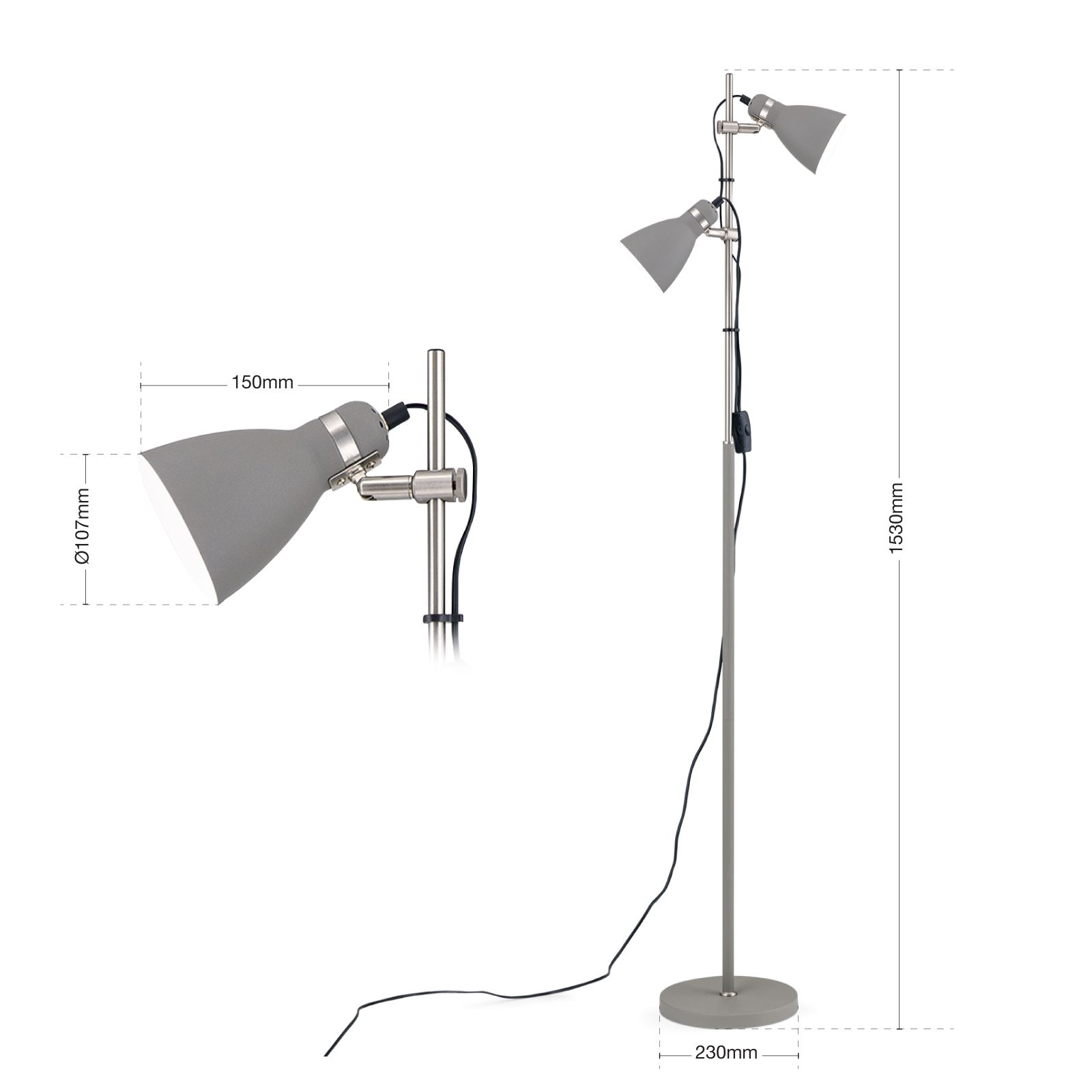 Die Stehleuchte SCHOOL lässt sich in viele verschiedene Wohnbereich eingliedern, sowohl im Arbeits-, Wohn-, Kinder- als auch Schlafzimmer findet sie ihren Platz und sorgt dort für ausreichend Licht. Sie hat 2 Schirme, die individuell ausgerichtet werden können, je nachdem, wo man den Lichtstrahl braucht. Praktisch ist auch, dass auch die Höhe der Leuchtenköpfe verstellt werden kann und sie somit noch mehr Flexibilität bietet. Sowohl der Standfuß als auch die Schirme sind farblich gleich gehalten, nur das Gestell ist Silber, was die Leuchte in ihrem Gesamtbild abrundet. Mit einem externen Schalter kann sie ganz einfach ein- und ausgeschaltet werden. Die Leuchte ist mit 2 E27-Fassungen ausgestattet und kann mit maximal 40 Watt bestückt werden. Eine Verwendung von sparsamen LEDs wird empfohlen, da sie sich durch ihren niedrigen Stromverbrauch auszeichnen.