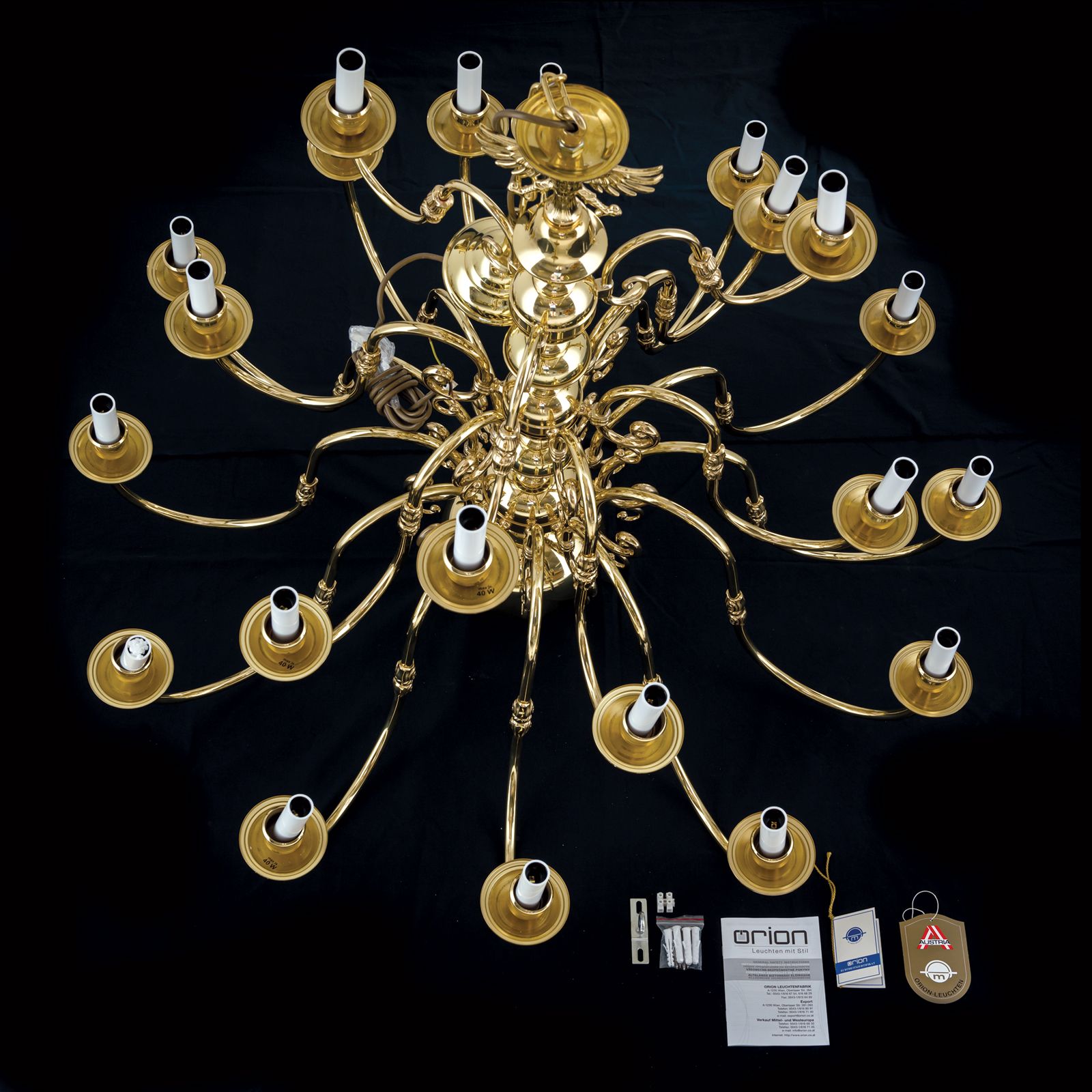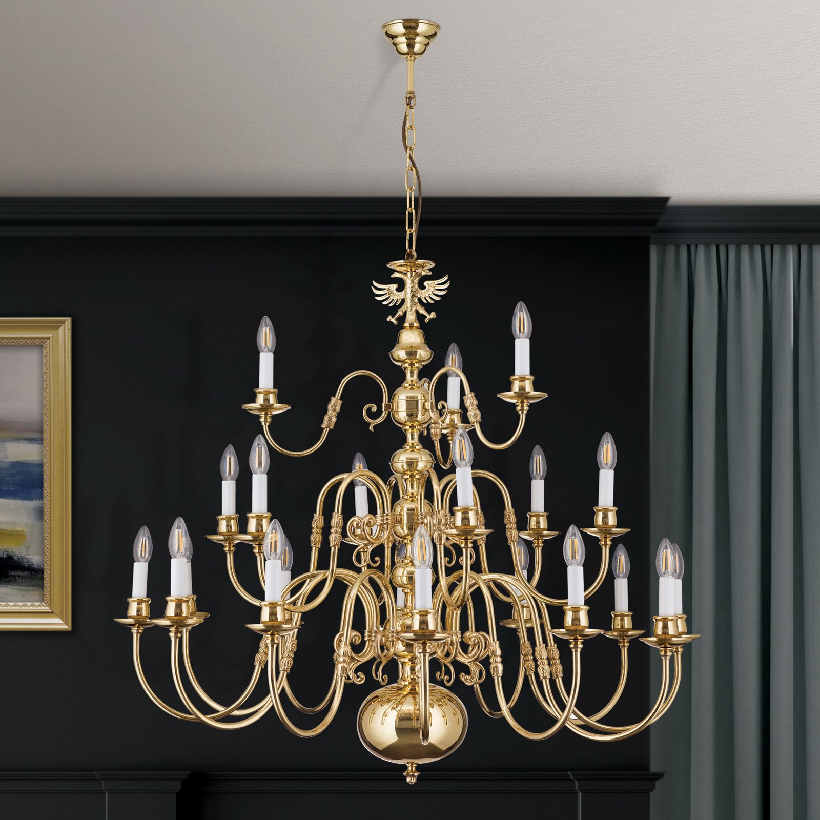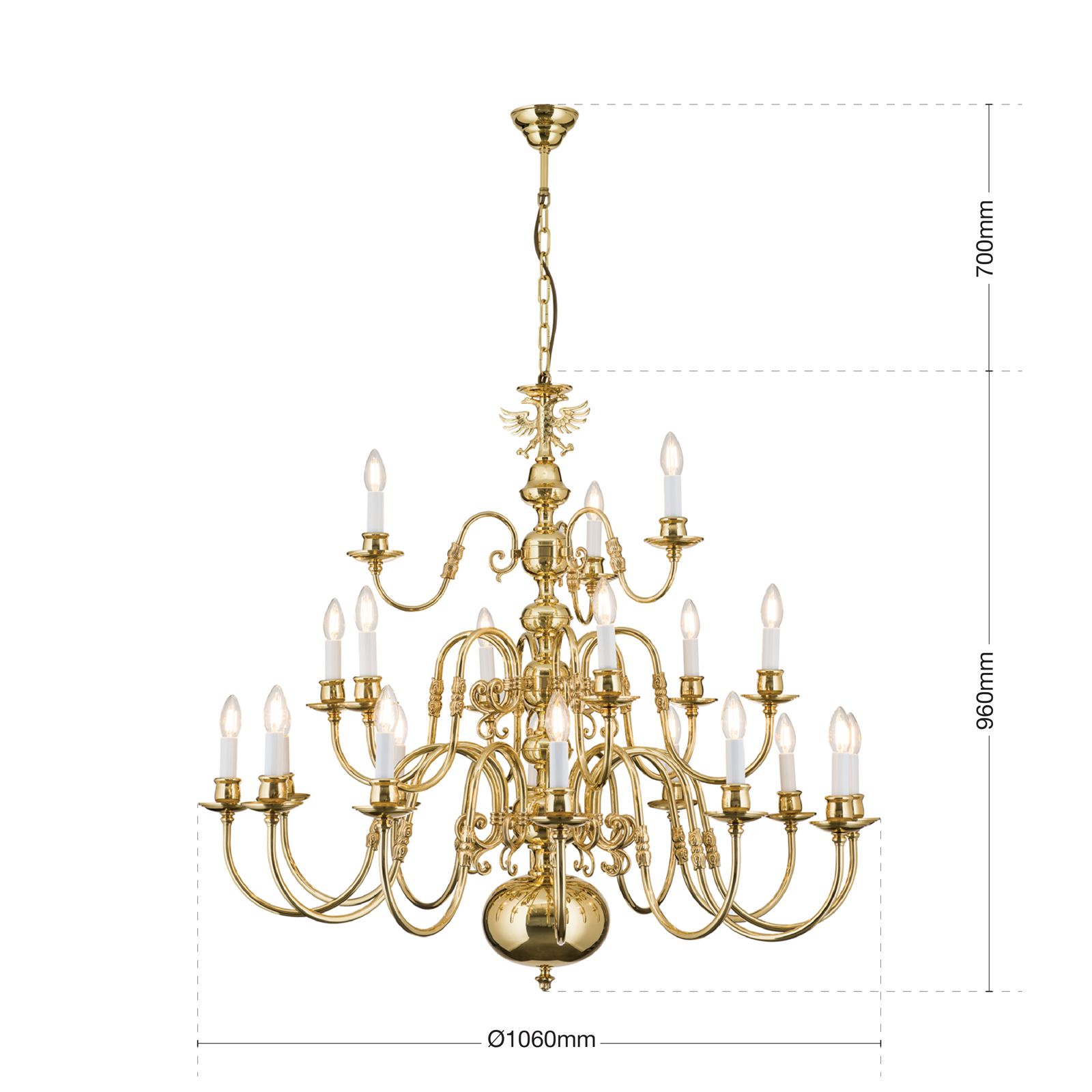 Stilluster FLÄMISCH, 12+6+3 flammig, Messing-glänzend, mit Adler