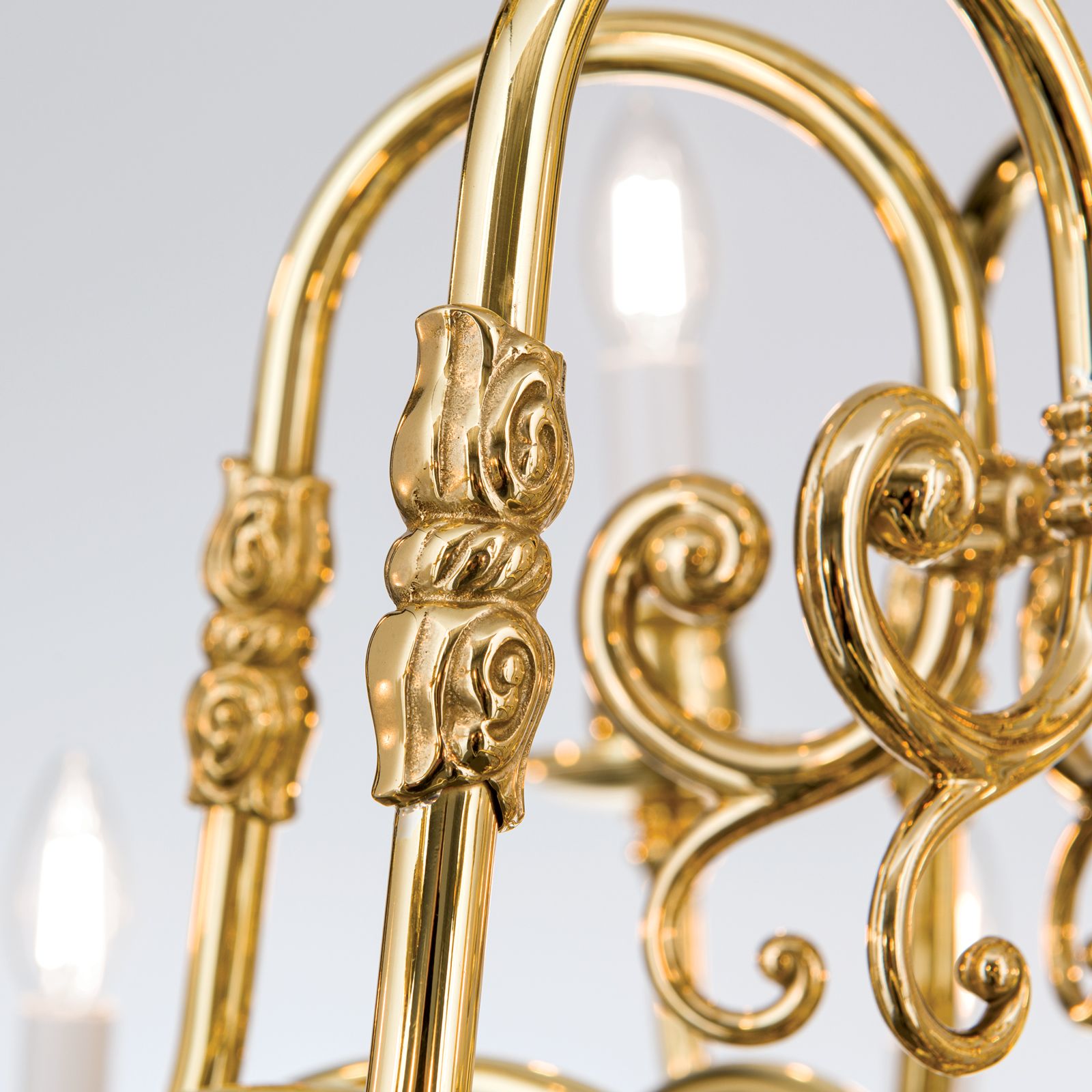 Dieser Kronleuchter aus der Serie FLÄMISCH ist weiters in Patina- und Satin-Optik verfügbar.