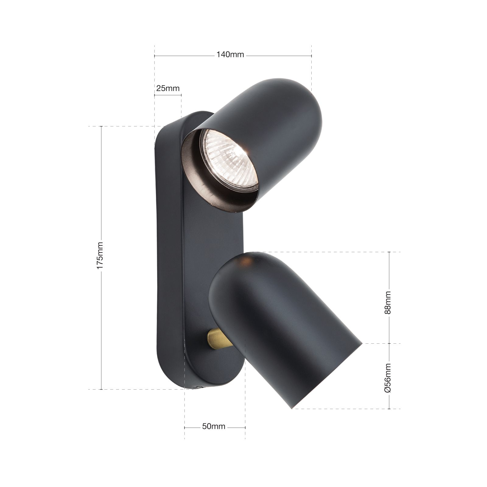 Strahler BRADLEY, 2-flammig, schwarz/messing