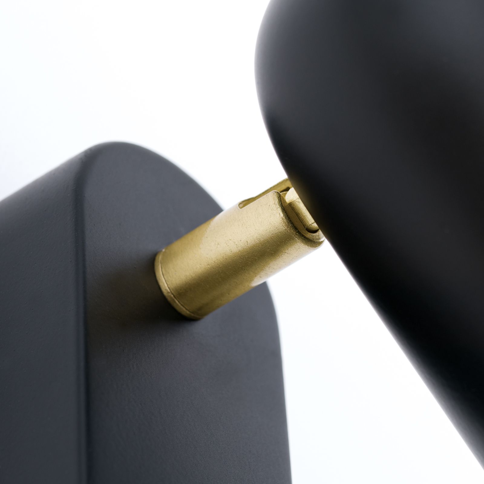 Der Kontrast aus mattschwarzer Oberfläche und goldglänzenden Messing-Armen verleiht ihm ein edles Erscheinungsbild. Die beiden Stahler sind sowohl dreh- als auch schwenkbar, wodurch der Lichtschein genau so ausgerichtet werden kann, dass er dort ankommt, wo er gebraucht wird.