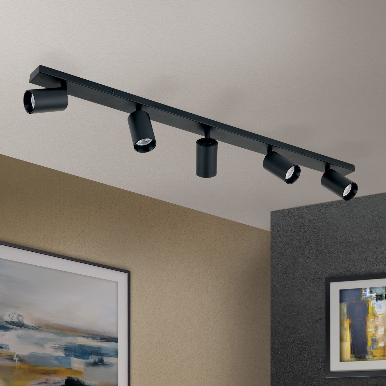 Modern und zugleich minimalistisch - das macht Strahler SEAN zu dem, was er ist. Nämlich zu einem kompromisslos zeitgemäßen Leuchtobjekt mit Charakter. SEAN gibt gerichtetes Licht ab und eignet sich mit seinen fünf Flammen zur Zonenbeleuchtung in größeren Räumen. Mit seiner schlanken Aufmachung in Schwarz oder Weiß passt diese reduzierte Leuchte in Wohn- und Schlafzimmer ebenso wie Küchen oder Flure. Das Gestell besteht aus Stahl, die fünf Lichtquellen können individuell ausgerichtet werden, etwa zur Beleuchtung von Tischflächen, Bildern oder Regalen. Die Leiste kann sowohl an der Decke als auch an einer Wand waagerecht oder senkrecht befestigt werden. Die GU10-Fassungen können mit maximal 13 Watt betrieben werden, wobei der Griff zu energiesparenden LED-Leuchtmitteln sich positiv auf die Energiekosten auswirken.