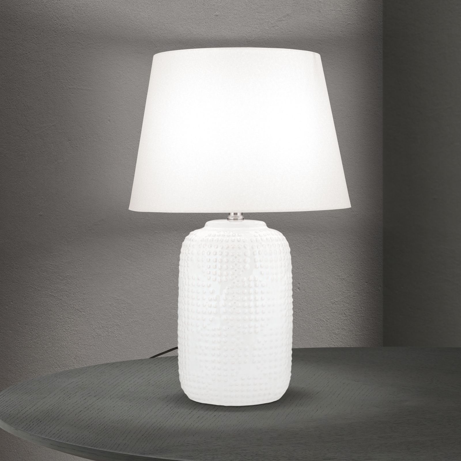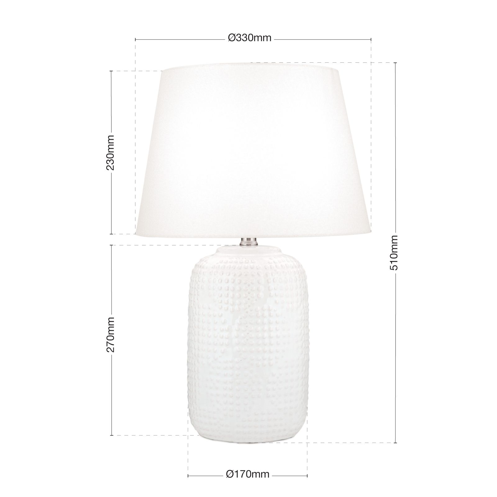 Die Tischlampe CORAL besticht durch ihr elegantes Design und hochwertige Verarbeitung. Mit einer Gesamthöhe von 51 cm fügt sie sich perfekt in jeden Raum ein und sorgt für eine angenehme Beleuchtung. Der weiße Keramikfuß ist mit einem stilvollen Dekor versehen, das für einen Hauch von Raffinesse sorgt. Der cremefarbene Leinenschirm ergänzt das edle Design und streut das Licht sanft für eine behagliche Atmosphäre. Der Schalter befindet sich am Kabel, was eine einfache Bedienung ermöglicht. Der Schirm wird mit einem Schraubring sicher an der Fassung fixiert. Ausgestattet mit einer E27-Fassung, ist die Tischlampe mit einer Vielzahl von Leuchtmitteln kompatibel. Ob als Leseleuchte auf dem Nachttisch oder als dekoratives Element im Wohnzimmer – die Tischlampe CORAL ist ein stilvoller Blickfang, der jede Einrichtung aufwertet.