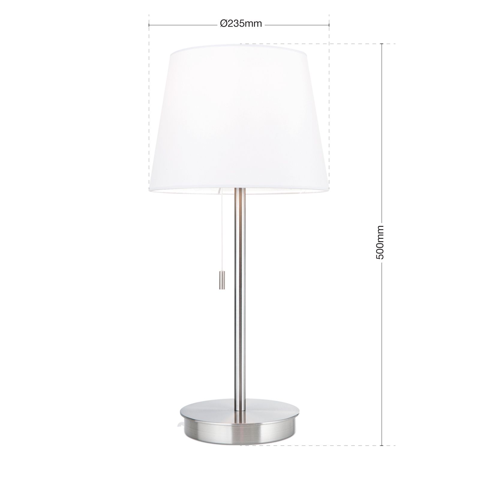 LUDWIG ist eine unaufgeregt aber dennoch reizende Tischlampe, die jede Anrichte im Vorraum oder das Nachtkästchen beim zu Bett gehen, verschönert und über eine angenehme Lichtverteilung verfügt. Ob im klassisch oder modern eingerichteten Räumen - LUDWIG wird sein Plätzchen schon finden und ein treuer Wegbegleiter sein. Das Gestell ist in Satin gehalten und wird mit einem weißen Schirm kombiniert. Im runden Standfuß versteckt sich eine ganz nützliche Funktion, nämlich ein USB-Anschluss. So kann das Handy im Nu aufgeladen werden. Ein Ziehschalter ermöglicht ein blitzschnelles Ein- und Ausknipsen der Leuchte. Ausgestattet mit einer E27-Fassung wird sie mit maximal 40 Watt bestückt. In Kombination mit sparsamen LEDs wird LUWDIG jedoch Ihre Geldbörse schonen.