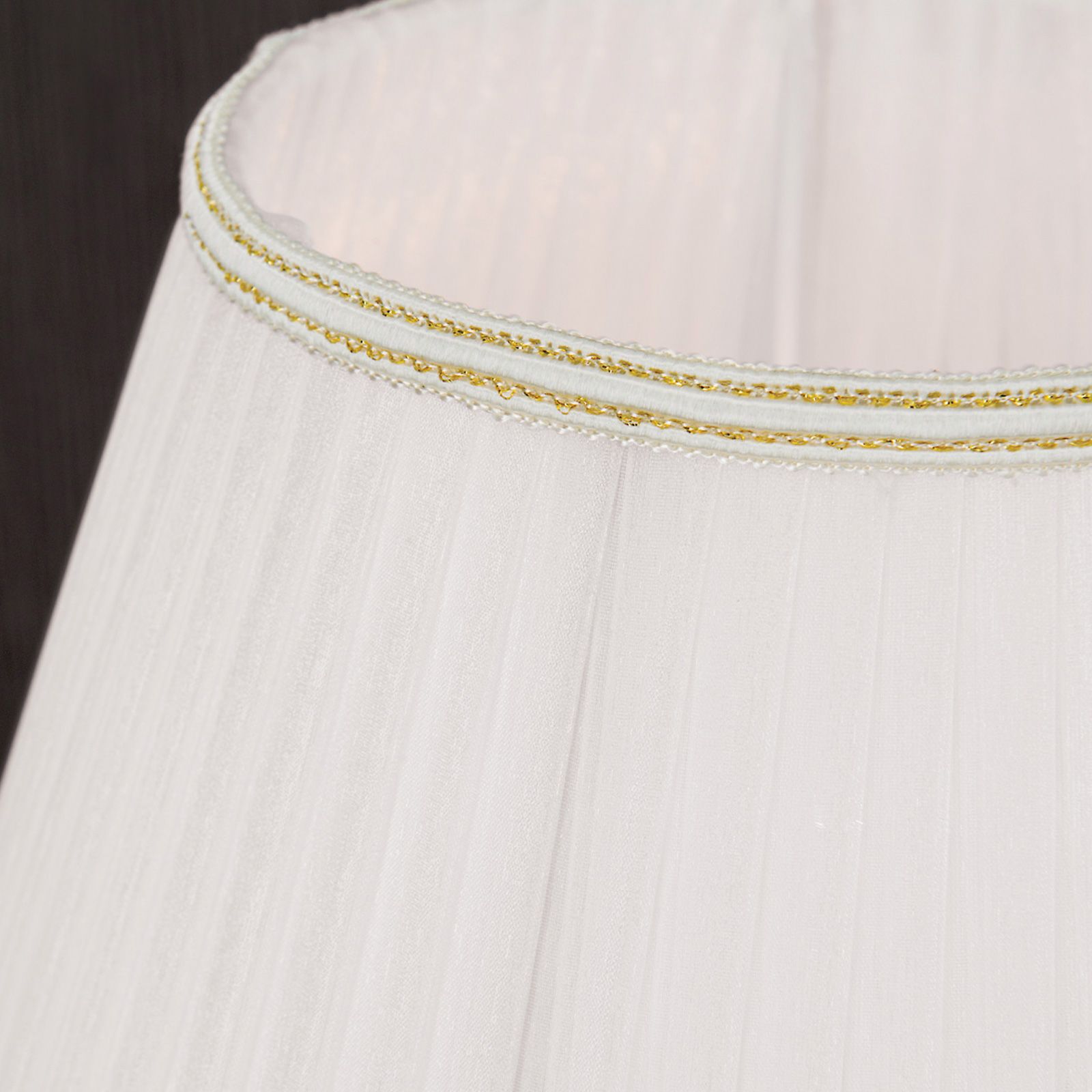Diese Tischlampe finden Sie auch in einer 3-flammigen Variante mit weißem Schirm und einer 1-flammigen Variante mit organza weißem Schirm.
