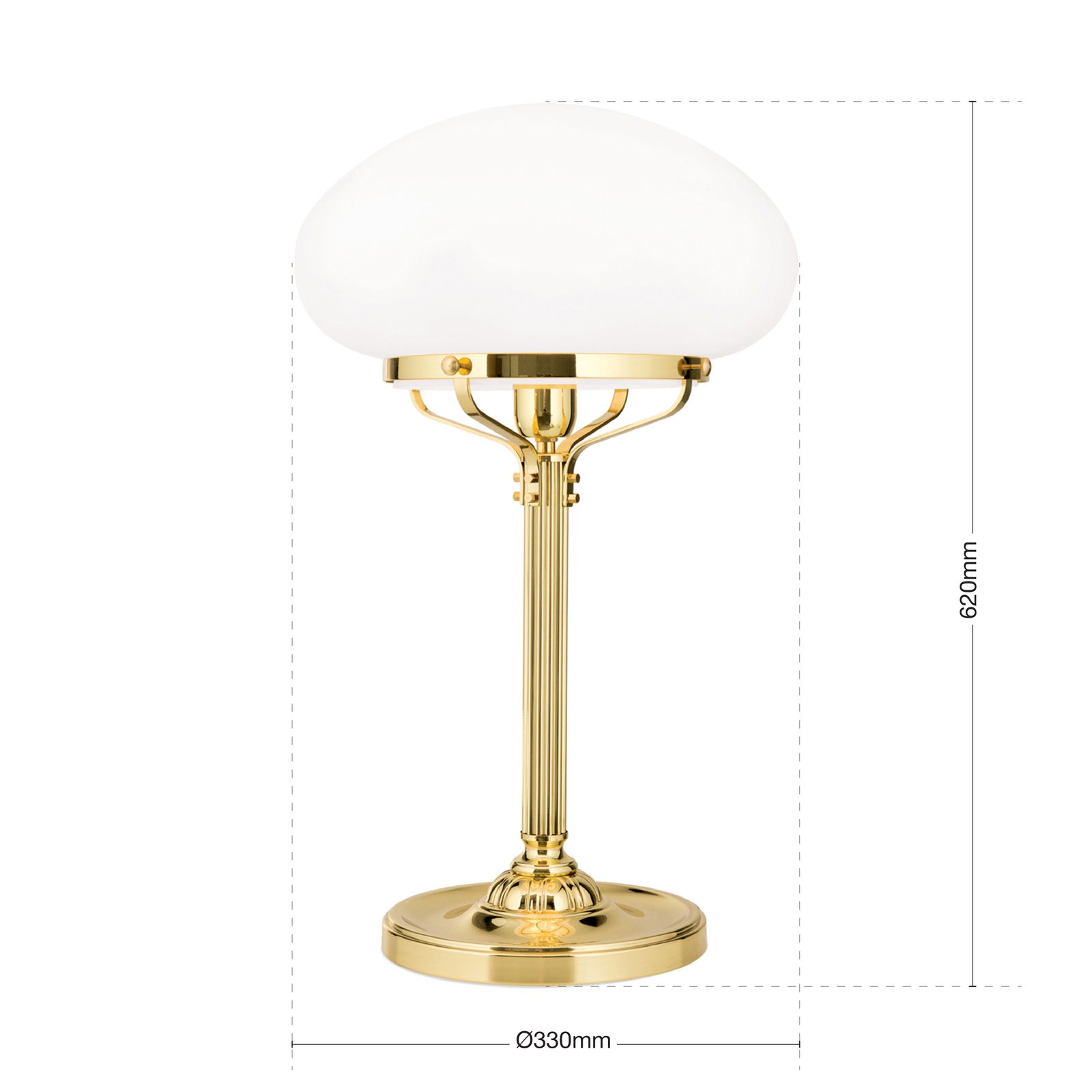 Tischlampe WIENER NOSTALGIE, Messing-glänzend, mit opal mattem Glas, H62cm