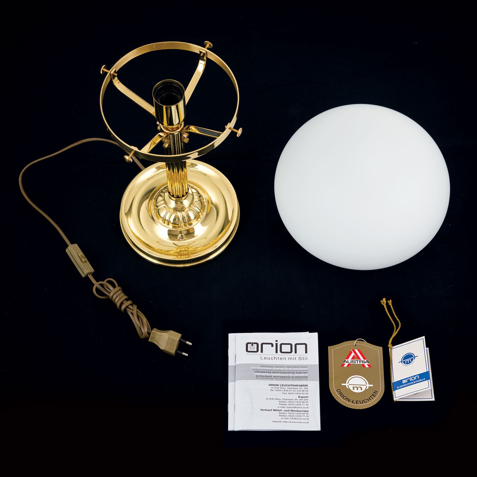 Tischlampe WIENER NOSTALGIE, Messing-glänzend, mit opalmattem Glas, H51cm