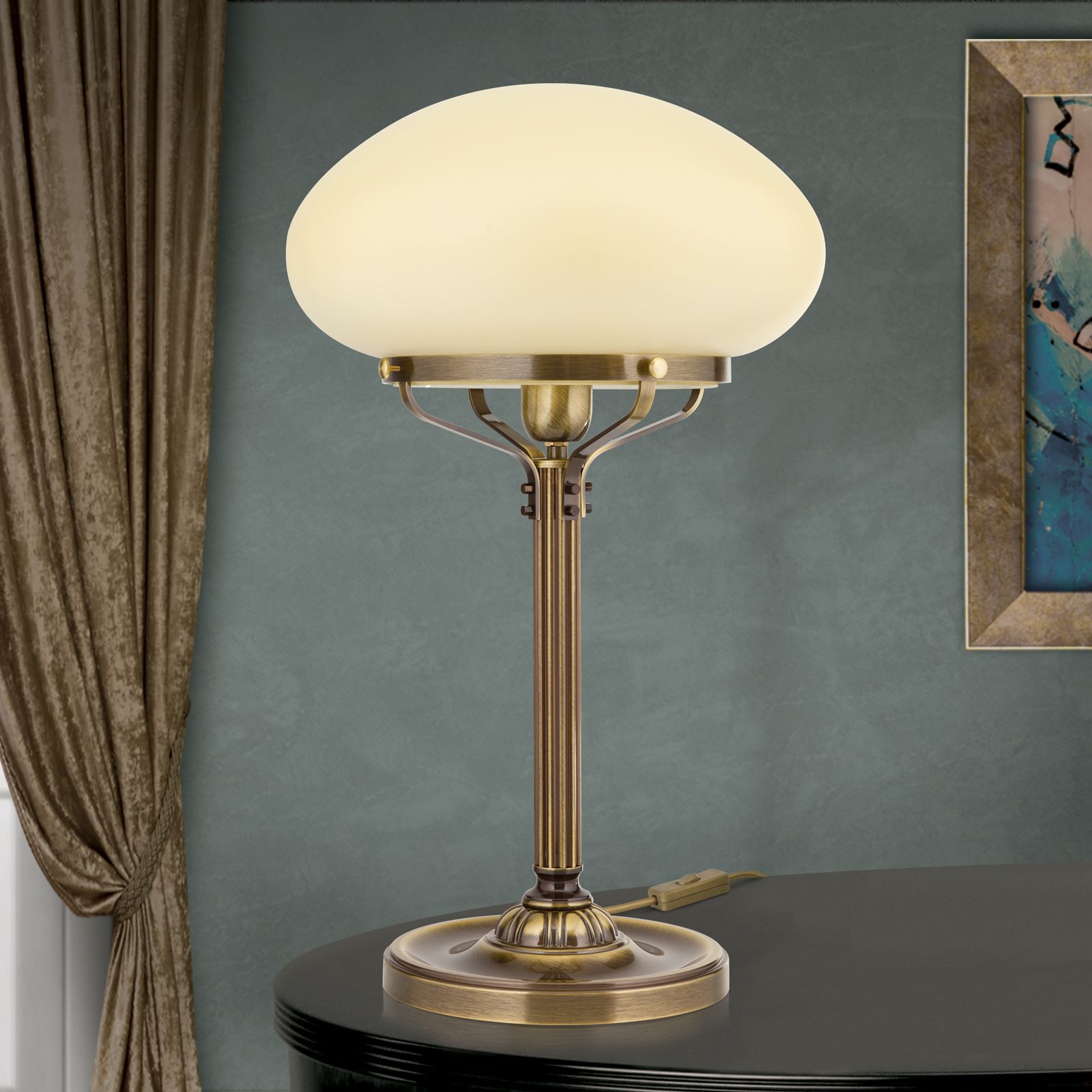 Tischlampe WIENER NOSTALGIE, Patina, mit champagne mattem Glas, H62cm
