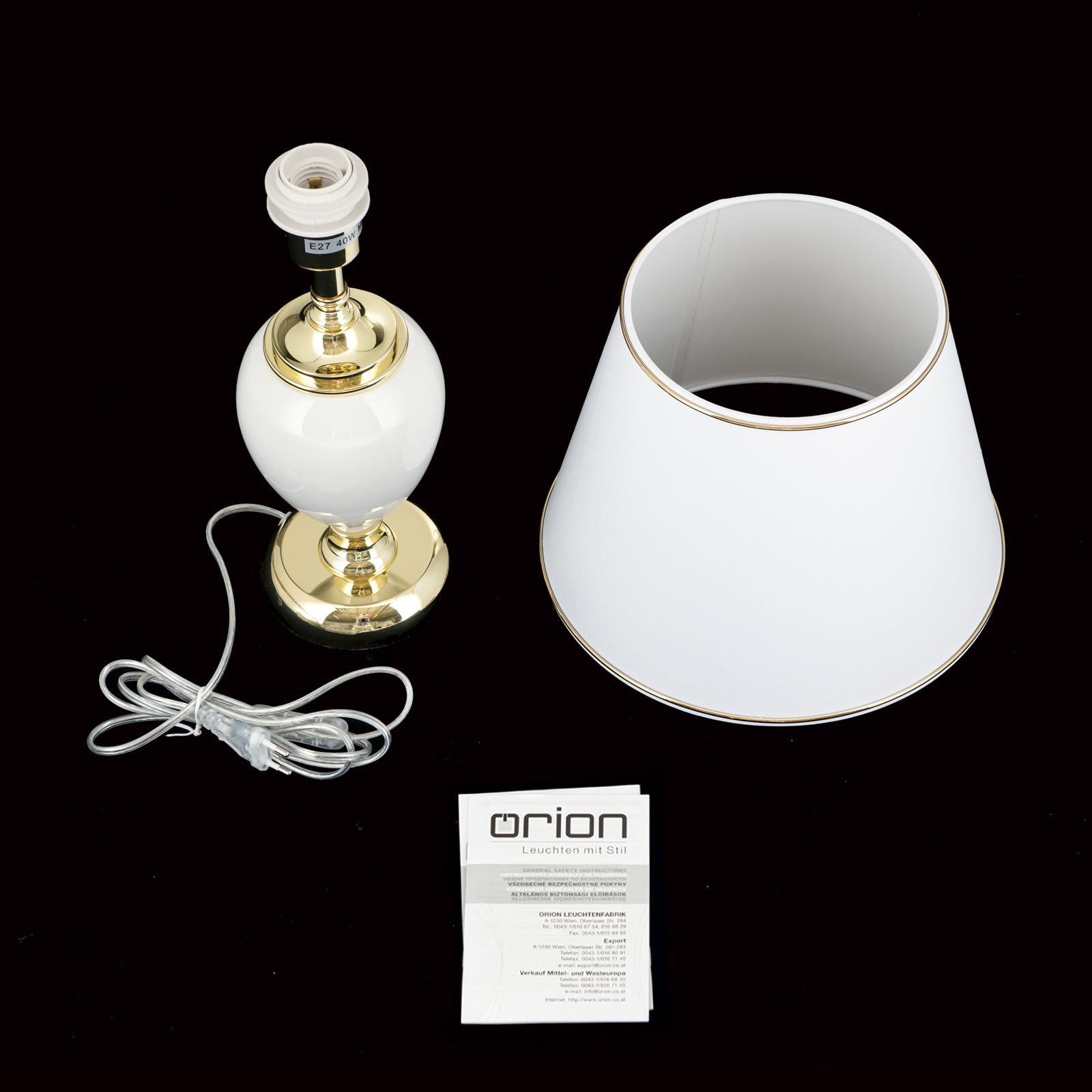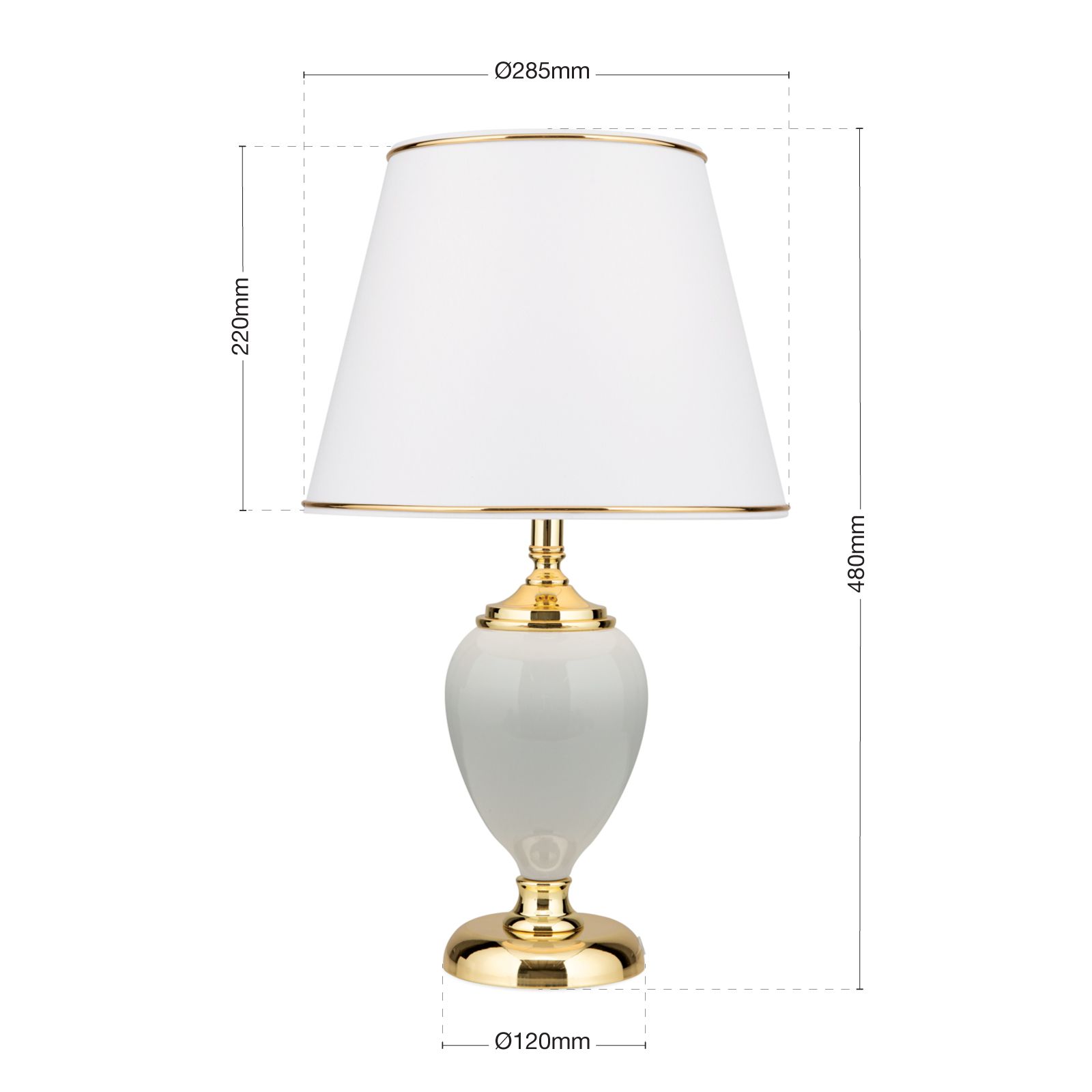 Der weiße Schirm aus hochwertigem Chintz-Stoff verleiht der Leuchte eine sanfte Lichtstreuung und sorgt für eine angenehme Atmosphäre. Eine dekorative Zierborte rundet das stilvolle Erscheinungsbild ab. Der Schirm wird mit einem praktischen Schraubring befestigt, was einen einfachen Wechsel ermöglicht.