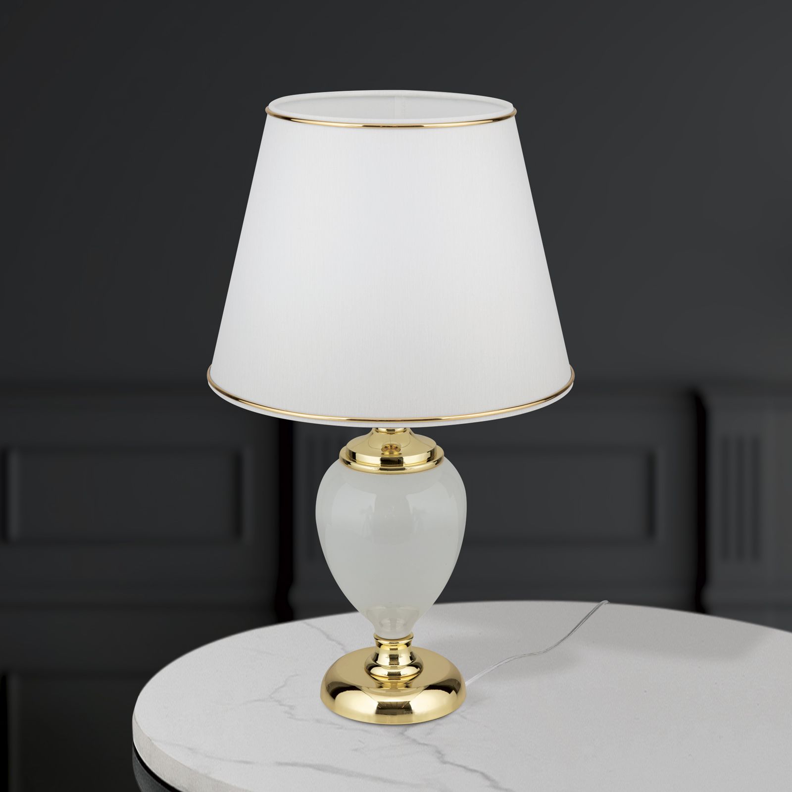 Die Tischleuchte OVUM vereint Eleganz und Funktionalität in einem zeitlosen Design. Mit einer beeindruckenden Höhe von 48 cm setzt sie stilvolle Akzente in jedem Raum. Die Leuchte ist in zwei edlen Oberflächenvarianten erhältlich: Chrom und Gold. Beide Ausführungen harmonieren perfekt mit dem weißen Keramikfuß, der durch einen stabilen Metallsockel ergänzt wird.