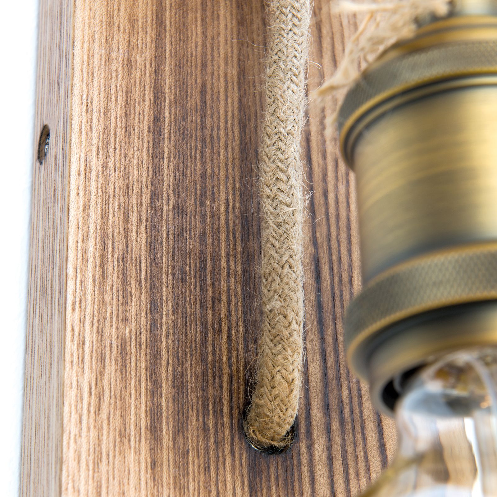 Die Wandleuchte BASSENA im Industrial Style versprüht einen rohen und ungeschliffenen Charme. Der Aufbau ist einfach und setzt sich aus einer feuerveredeltem Holzhalterung, einer Hanfseilabhängung und einer gebürsteten Messingfassung zusammen. Die Kombination aus den drei Elementen verleiht ihr einen coolen DIY-Charakter.