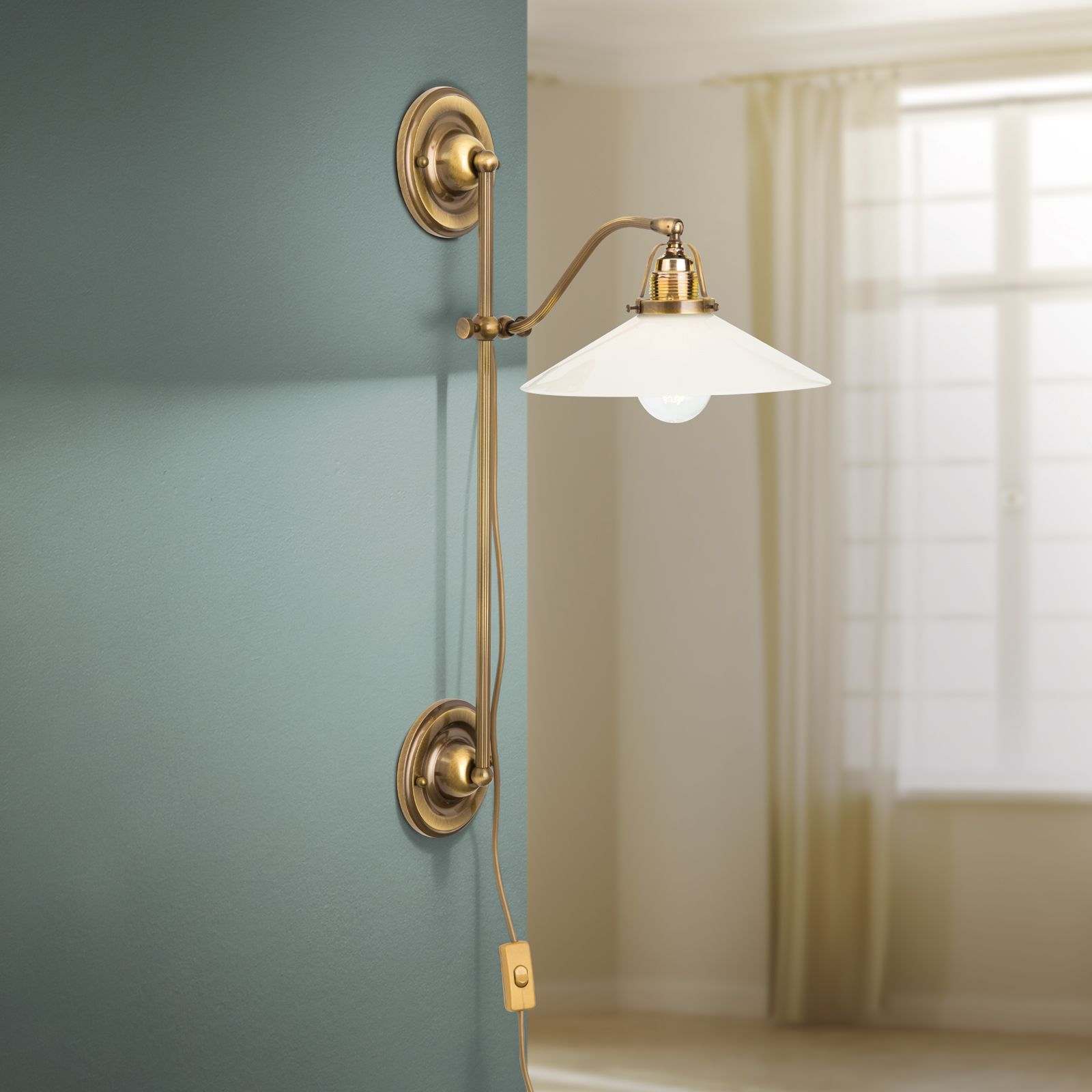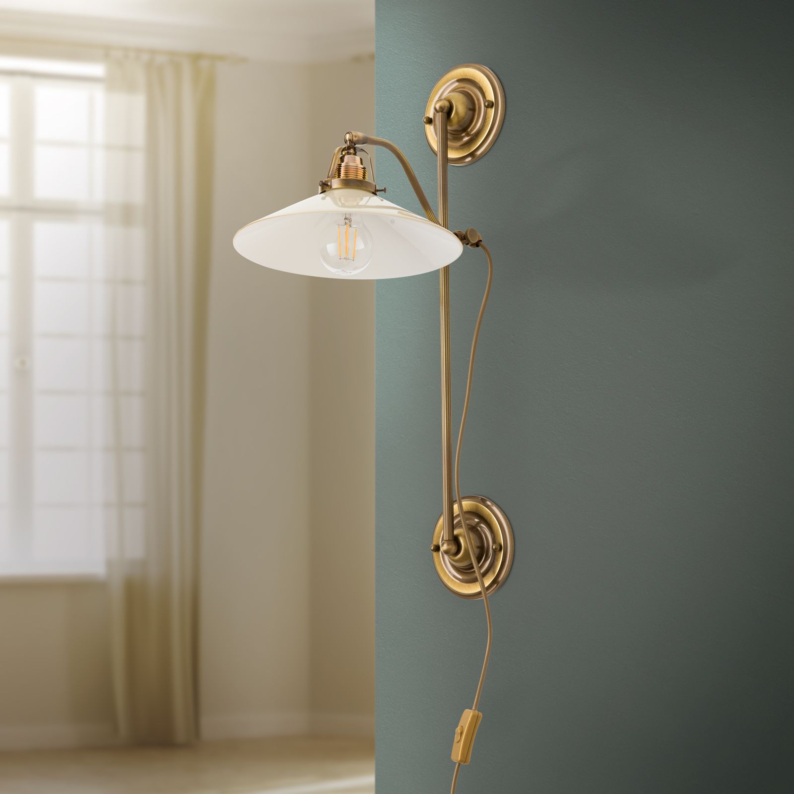 Wandleuchte ARTDESIGN, 1-flammig, Patina, mit champagner-färbigem Glas, verstellbar