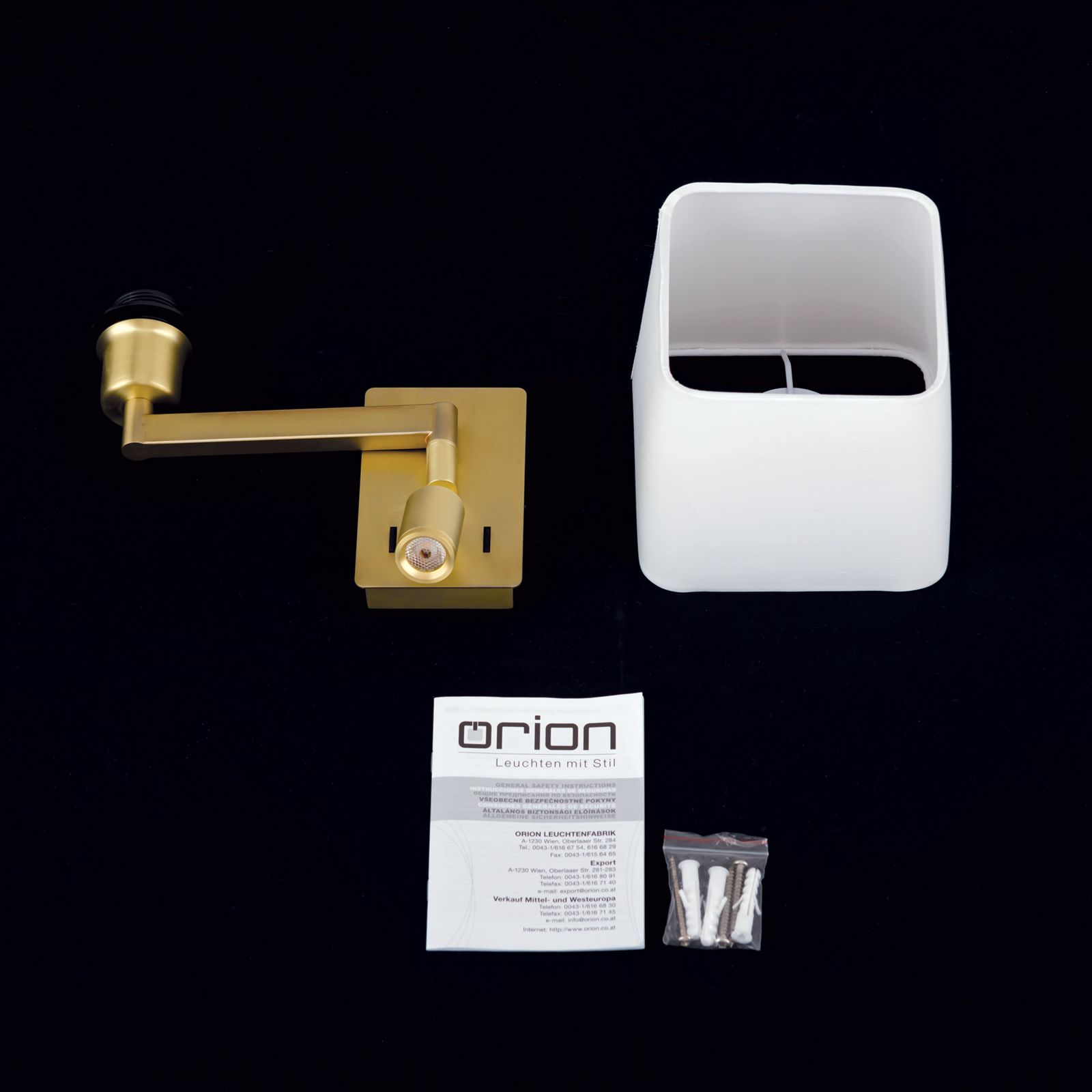 Wandleuchte CARLTON, Messing-matt mit weißem Stoffschirm