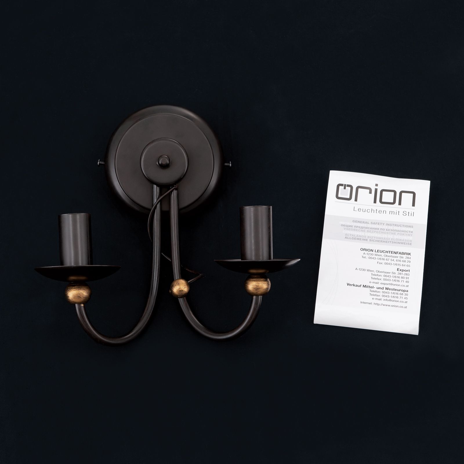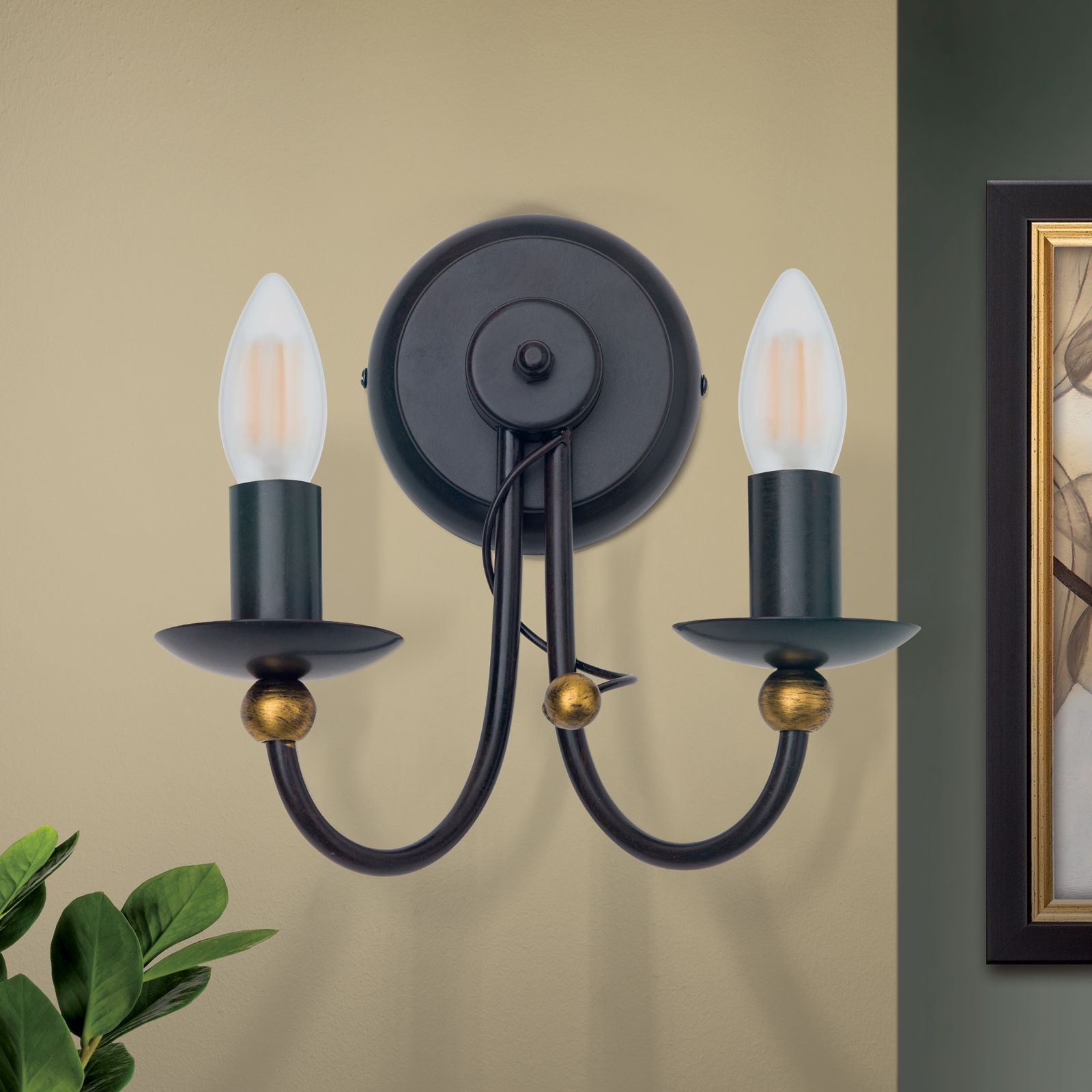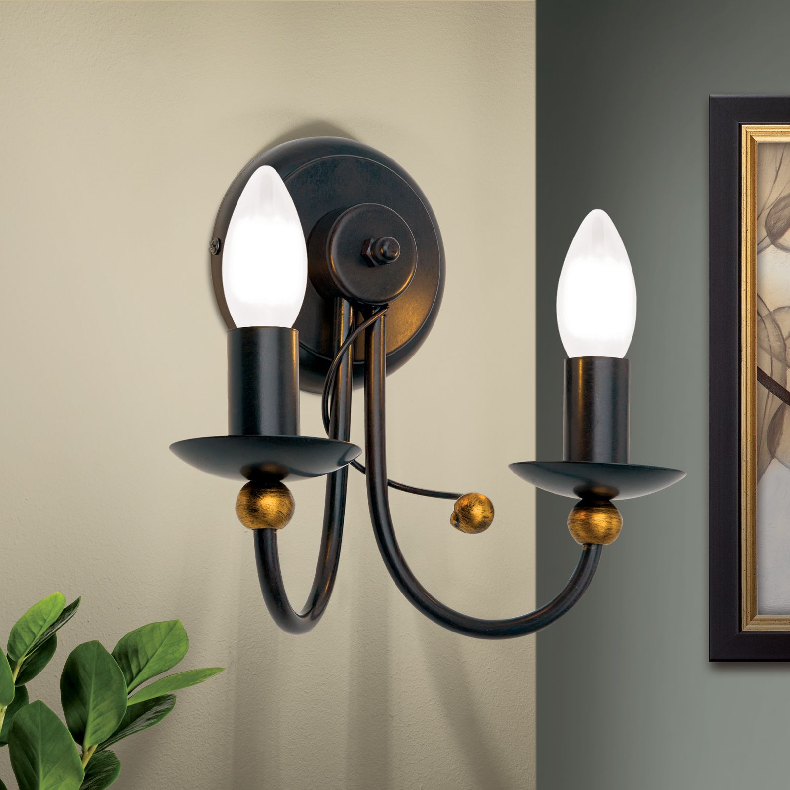 Wandleuchte GIOVANNI, 2-flammig, antik-braun, gold