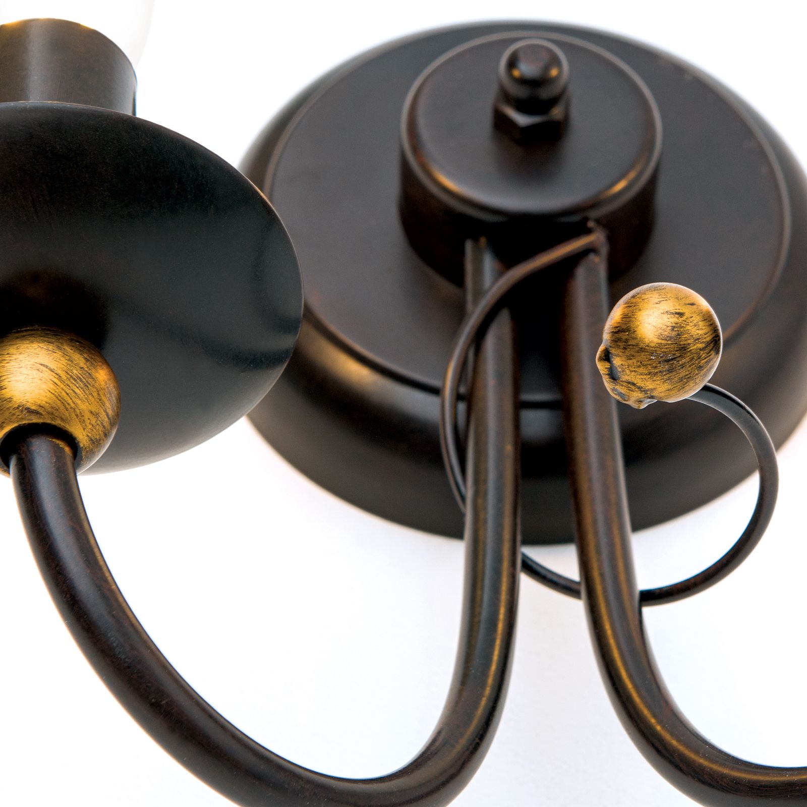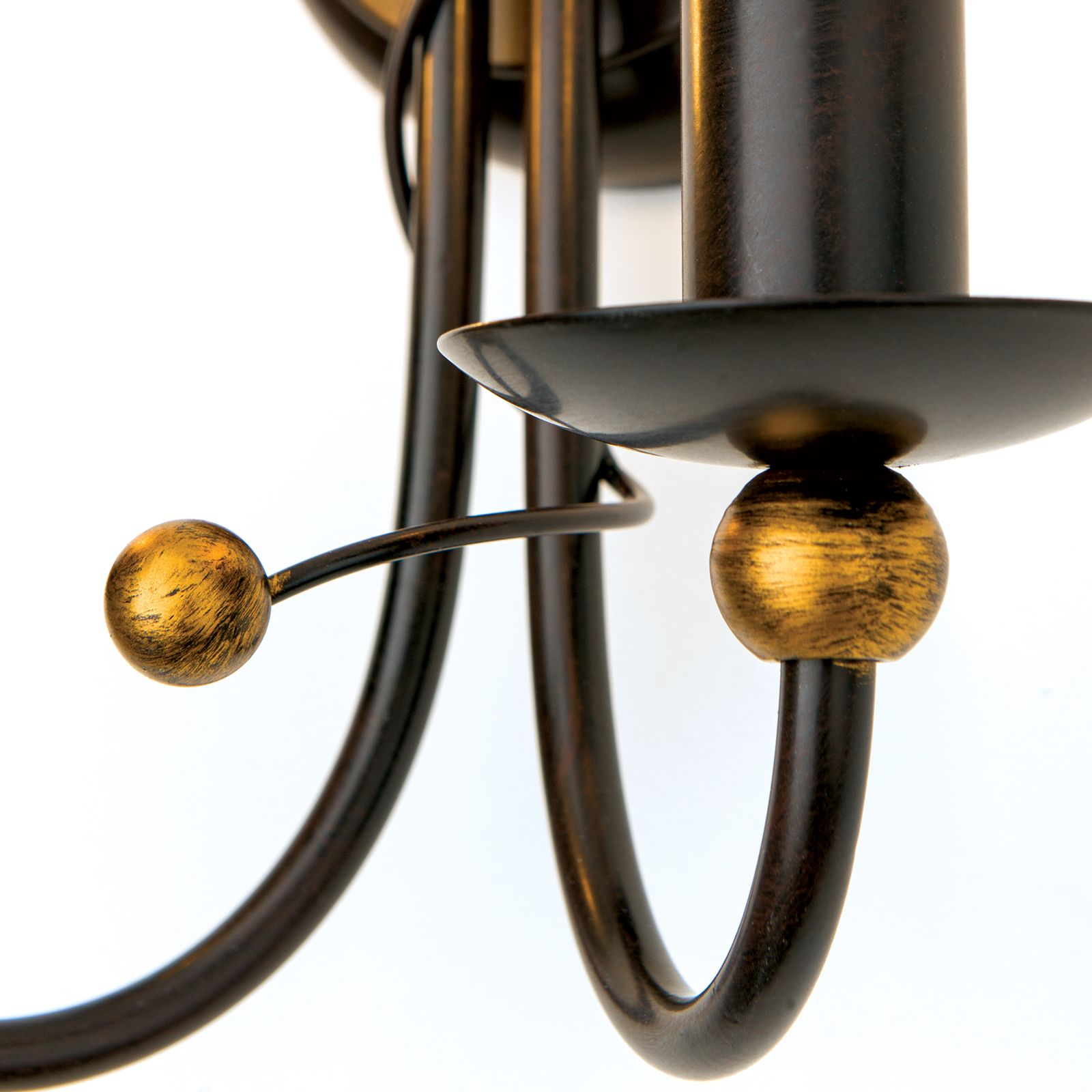 In der 2-flammigen Ausführung bewährt sich die dimmbare Wandleuchte GIOVANNI für viele Wohnräume im modernen Landhausstil, wie etwa einem Flur aber auch einem Wohnzimmer und sorgt für eine angenehme Zusatzbeleuchtung. Die antik veredelte Oberfläche trägt zu ihrer nostalgisch romantischen Wirkung bei. Zwei schwungvoll geformte Arme mit Kerzentellern sind prädestiniert für den Einsatz von matten Kerzenlampen oder Windstoßlampen mit E14-Sockel, die das nostalgische Flair der Leuchte komplettieren. Das Markenzeichen der Serie GIOVIANNI sind die goldenen Zierkugeln, die unterhalb an den Kerzentellern befestigt sind und der Leuchte das gewisse Etwas verleihen.