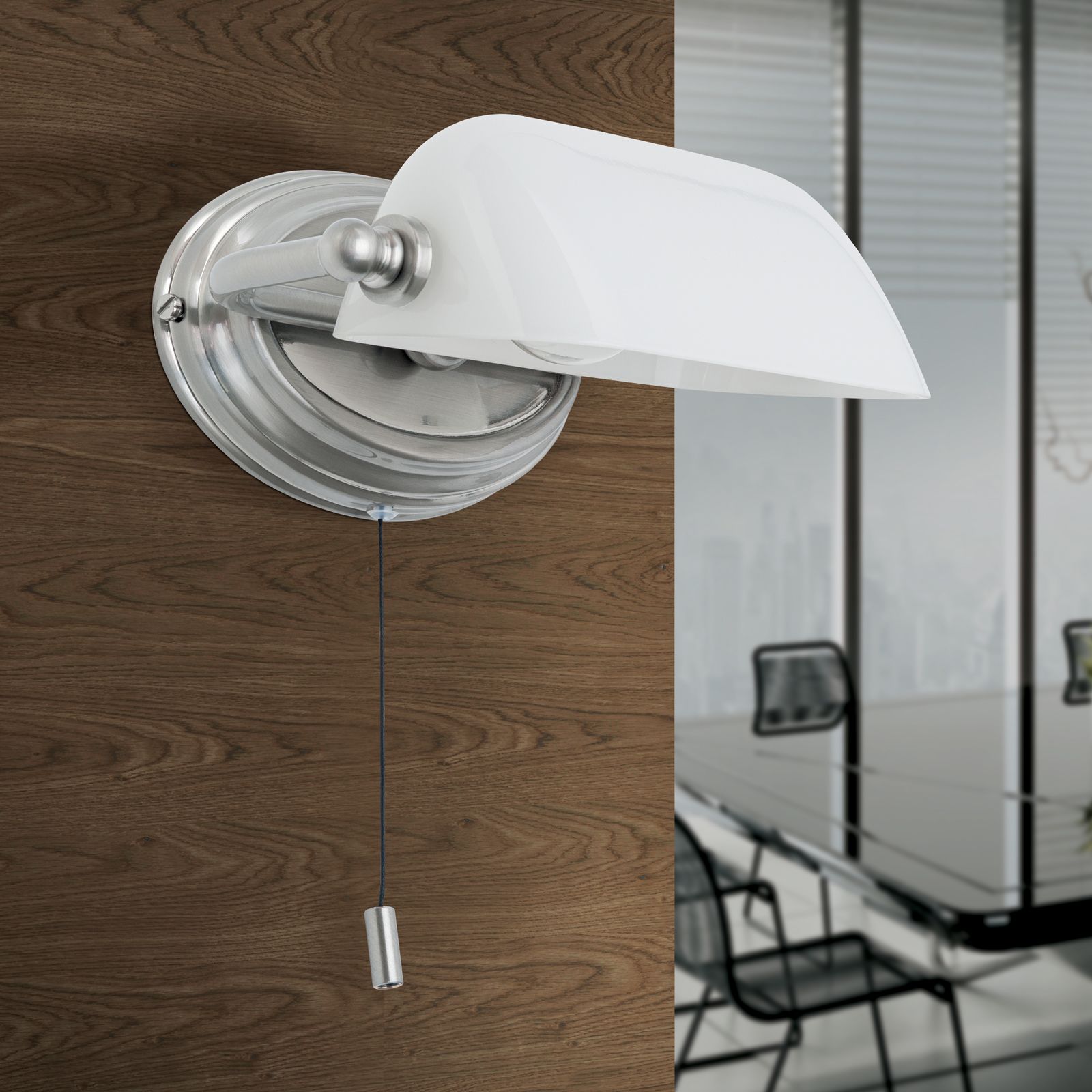 Wandleuchte HARVARD, Satin mit opalweißem Glasschirm