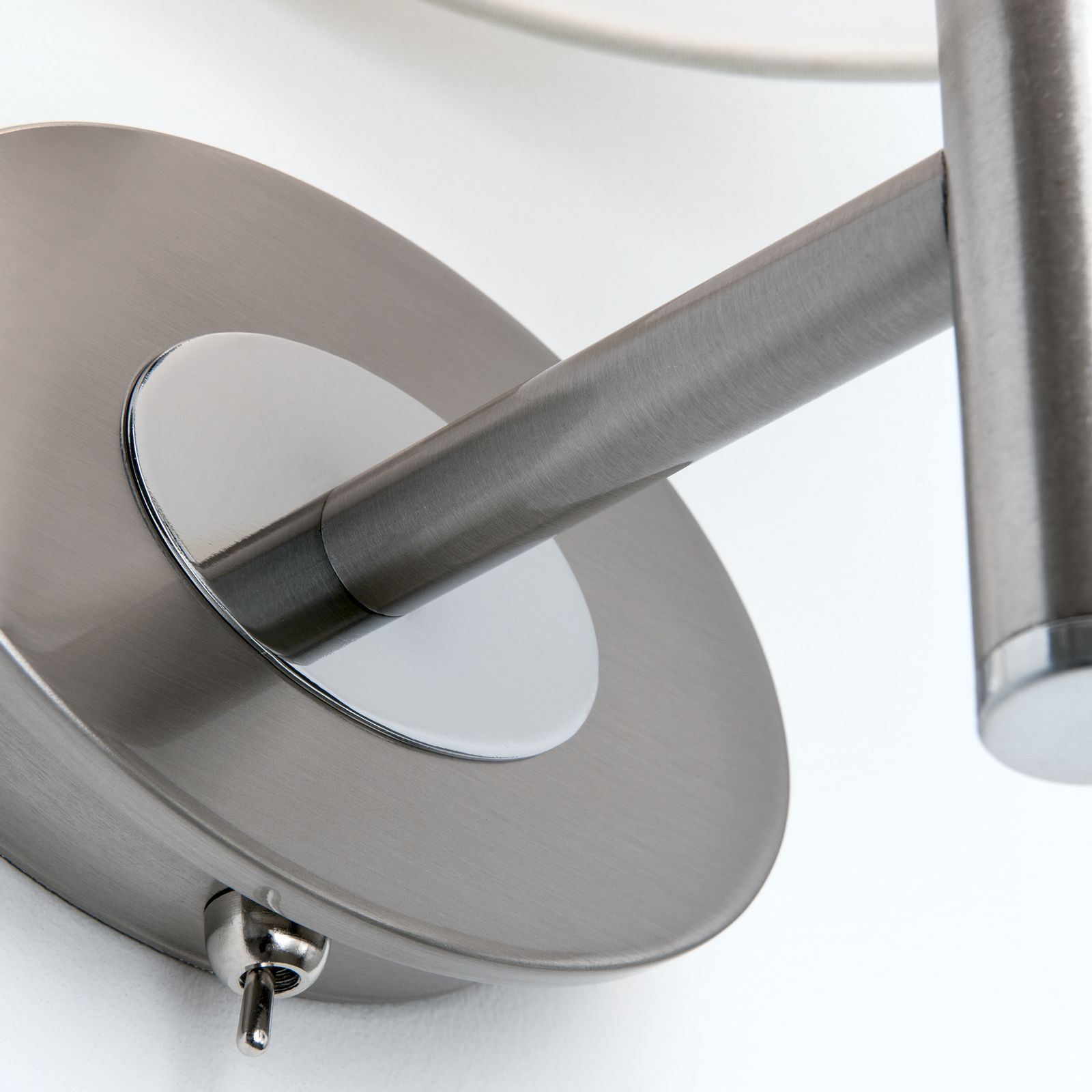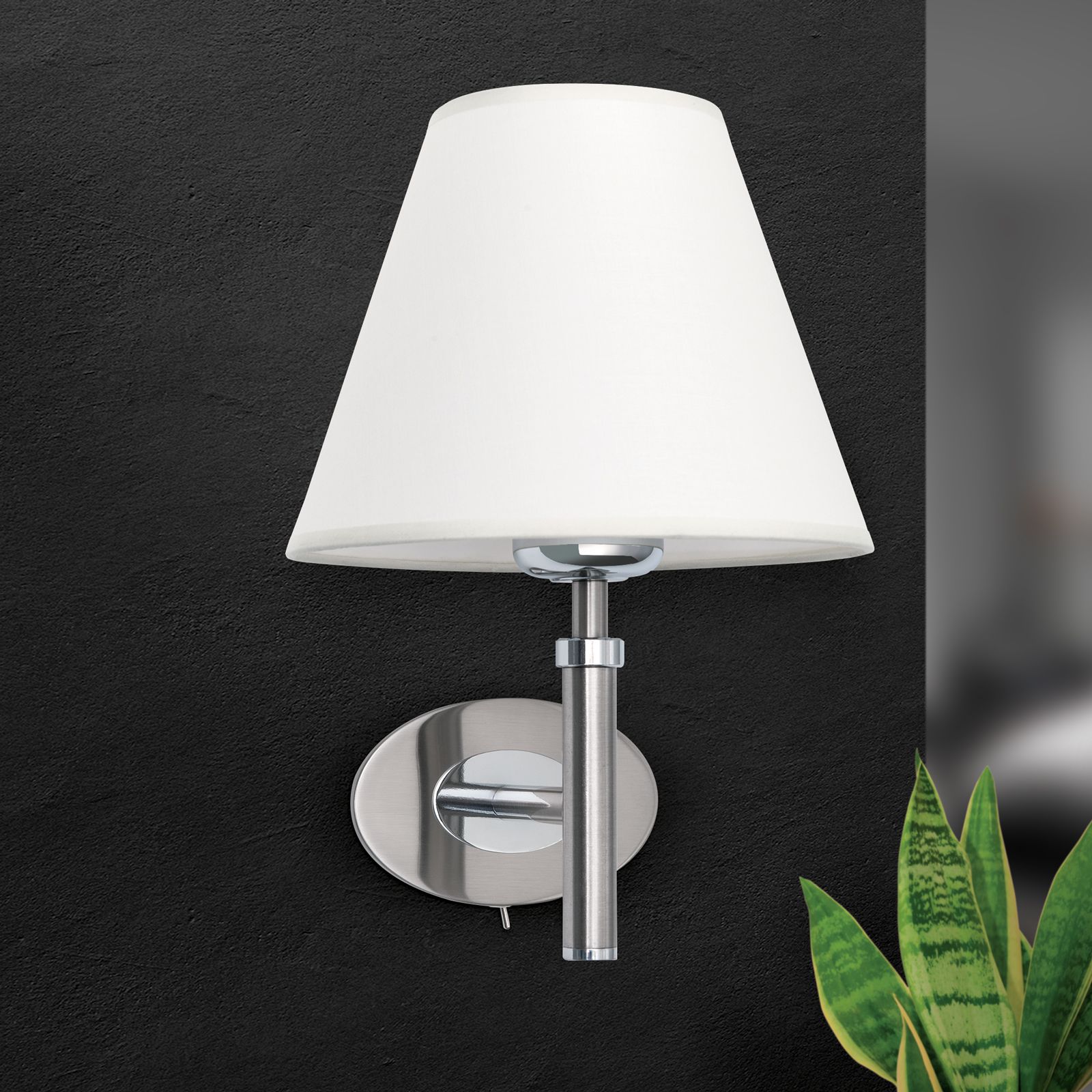 Klassische Eleganz vermittelt die Leuchtenfamilie KARA, zu der auch die gleichnamige Wandleuchte gehört. Wegen ihres zeitlosen Erscheinungsbilds fügt sich KARA harmonisch in klassisch eingerichtete Räume. Das Leuchtengestell besteht aus Metall und einer Oberflächenveredelung in Satin/Nickel-matt. Der konische Schirm besteht aus cottonbeige Stoff und sorgt für ein angenehm weiches Licht.
