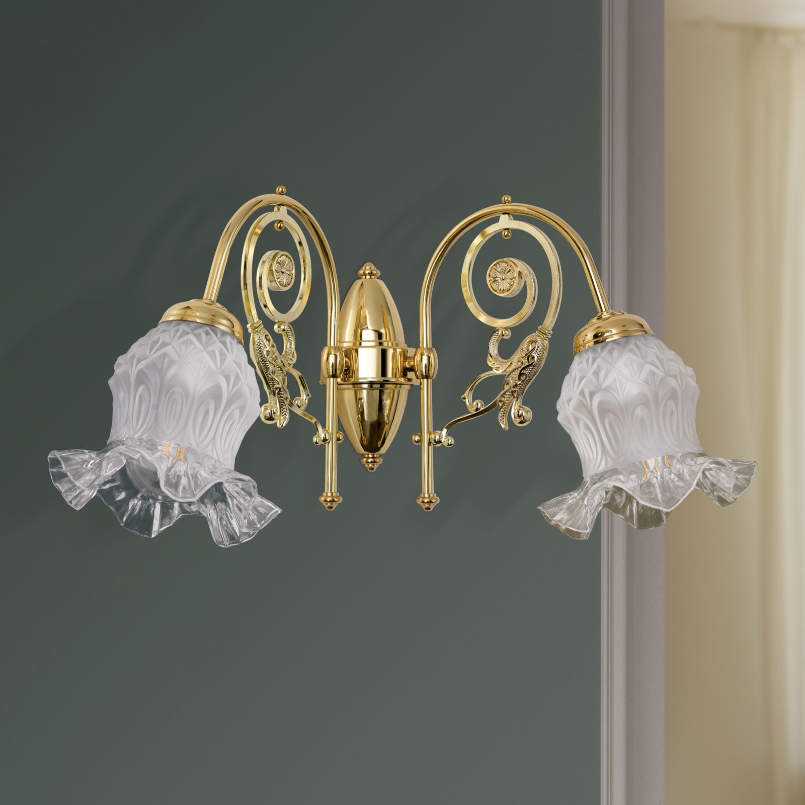 Wandleuchte RINGSTRASSE, 2-flammig, Messing glänzend, mit Blütenglas
